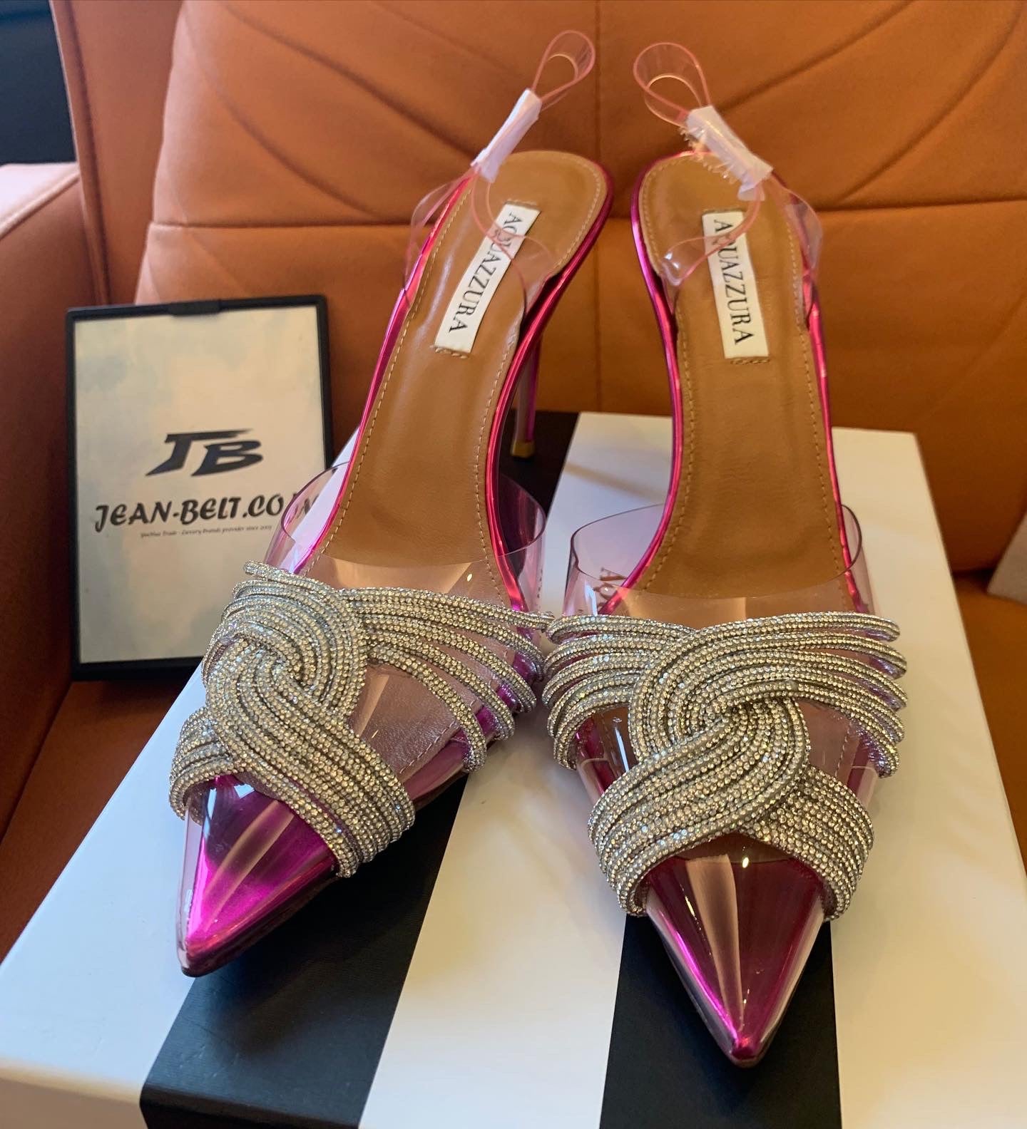 Elaborados por expertos con un diseño destalonado adornado con pedrería, estos stilettos Aquazzura añaden un toque de lujo y sofisticación a cualquier look. Perfectos para cualquier evento formal o salida nocturna, ofrecen un paso cómodo y seguro gracias a sus elegantes tacones de aguja. Realza tu estilo con estos stilettos de calidad profesional.
