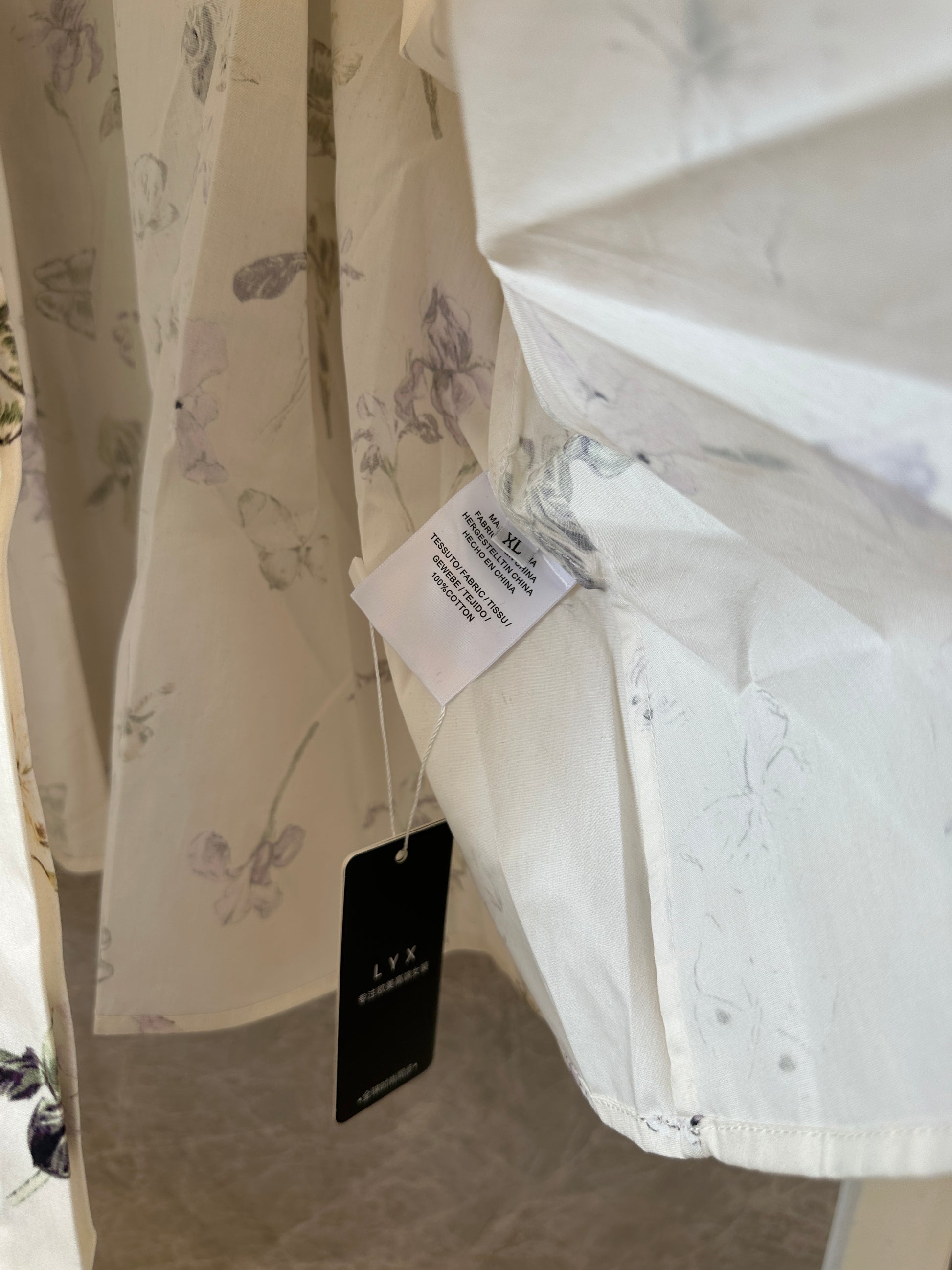 This elegant floral print shirt dress features a lightweight, breathable fabric with a soft drape, perfect for warm-weather wear. Designed with a classic pointed collar and a full button-down front, it combines a clean shirt silhouette with a feminine midi-length cut.