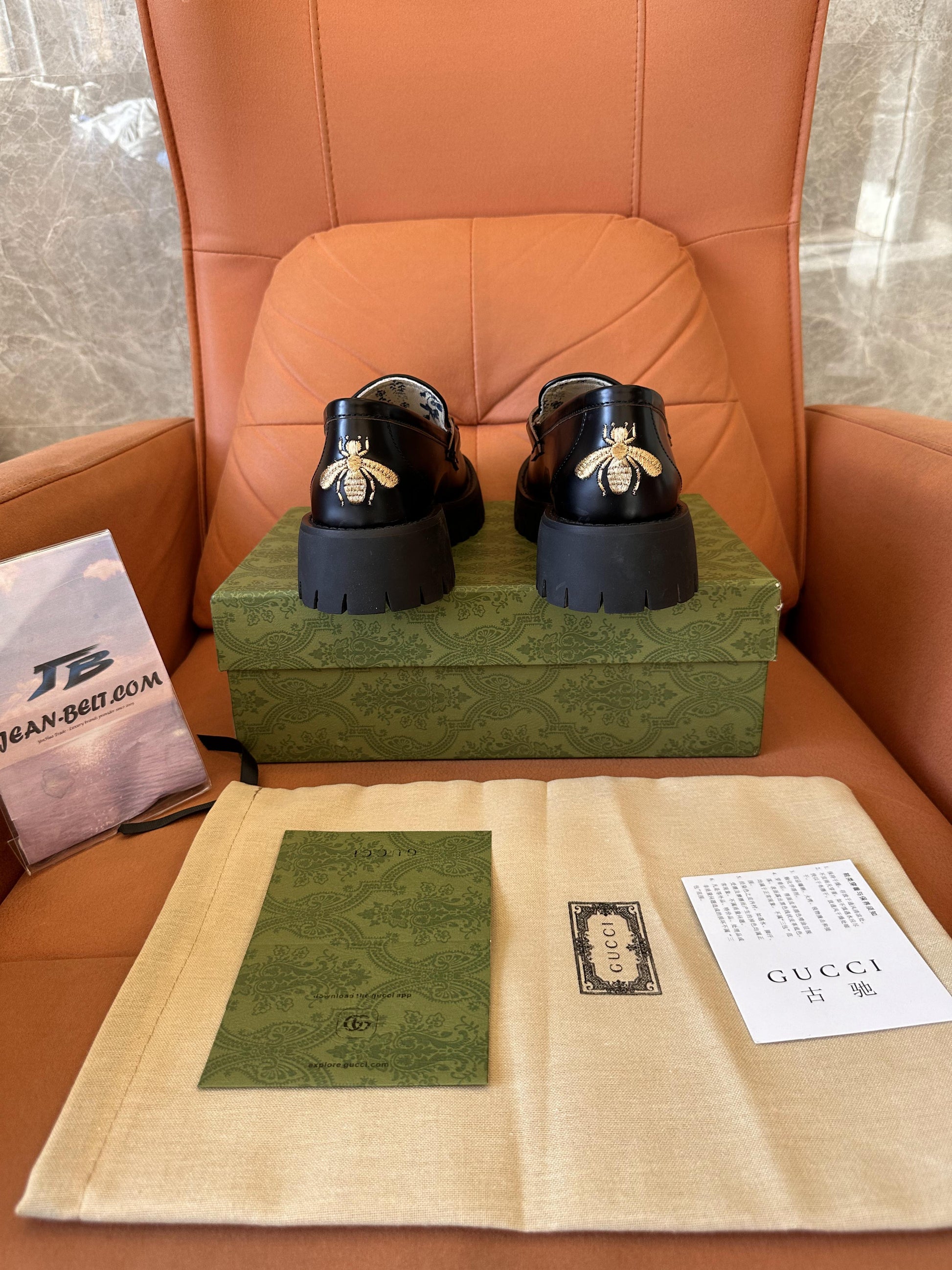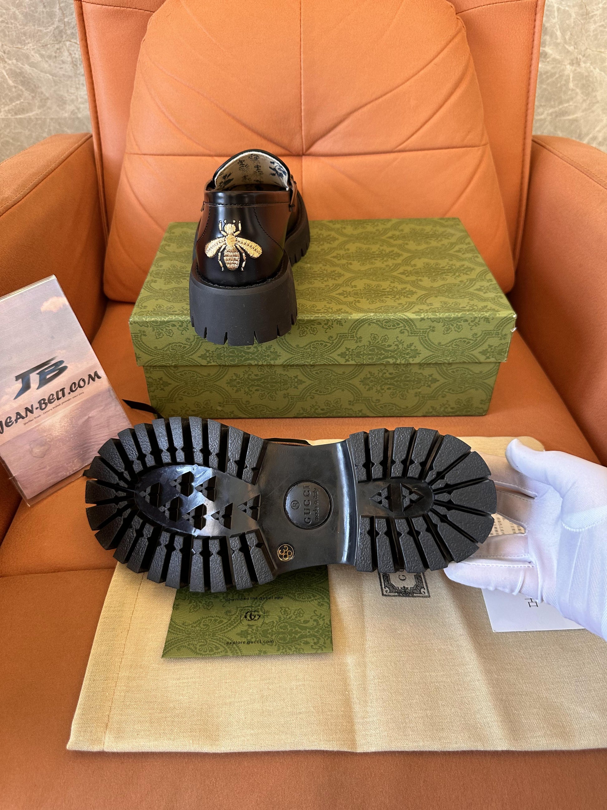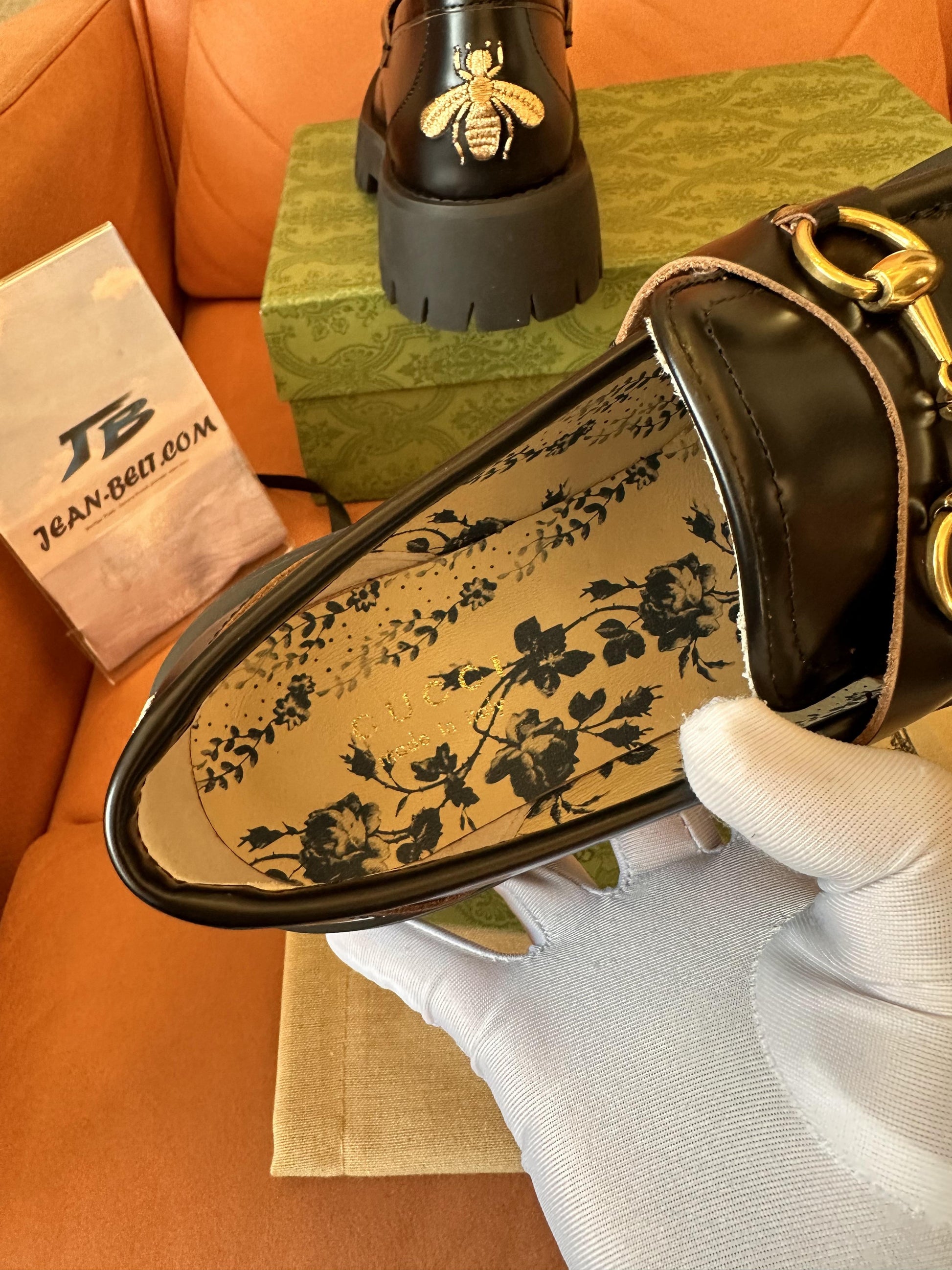 Sumérgete en la elegancia atemporal con los mocasines de piel negros Gucci para mujer , diseñados con un toque audaz y contemporáneo. Estos mocasines premium presentan una parte superior de piel negra pulida , adornada con el característico detalle de caballo dorado de Gucci en el empeine. Su diseño llamativo se complementa con una suela gruesa de goma que les da mayor altura y un toque moderno. Para un toque de lujo, los tacones están adornados con el icónico motivo de abeja bordado de Gucci. El forro interior de los mocasines luce un hermoso estampado floral, que ofrece un equilibrio perfecto entre estilo y comodidad. Perfectos para realzar tanto atuendos casuales como formales.