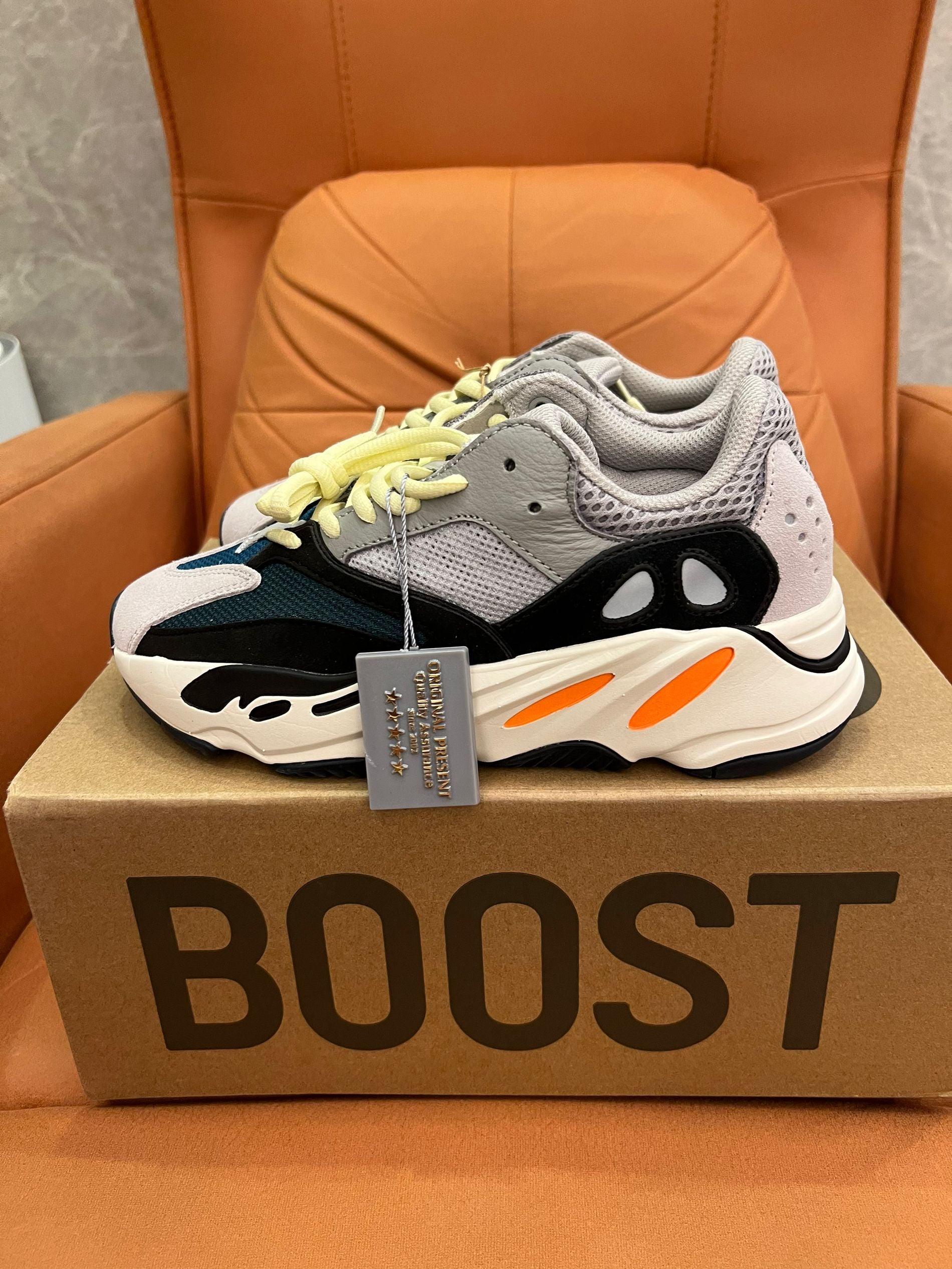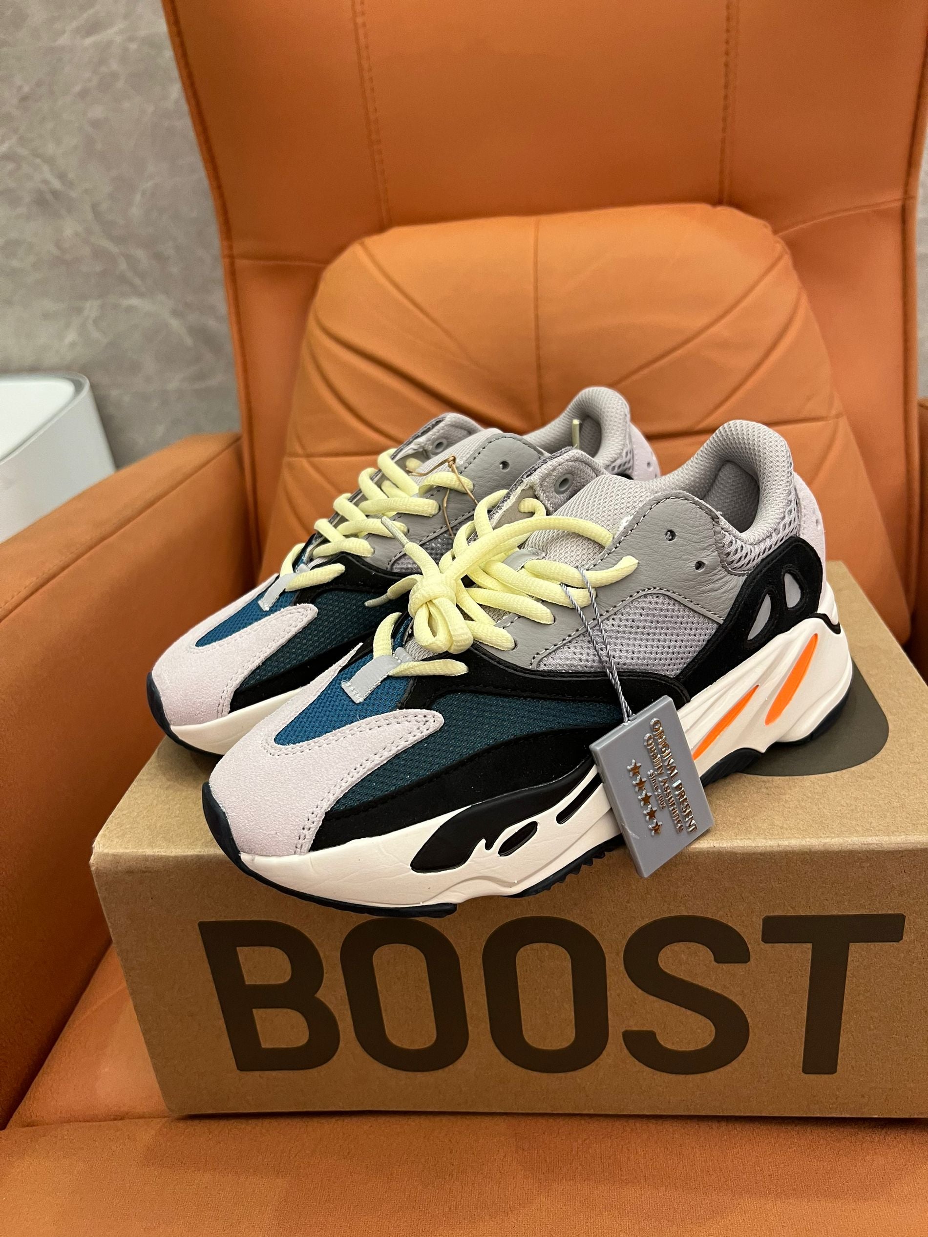 The Adidas Yeezy Boost 700 "Wave Runner" revolutionizes sneaker culture with its bold design and exceptional functionality. Featuring a mix of premium suede, mesh, and leather materials, this silhouette delivers a layered, textured look that's both retro and modern. The multicolor palette—combining teal, grey, black, and vibrant orange accents—makes a statement with every step. Equipped with Boost cushioning technology, these sneakers offer unparalleled comfort and responsiveness, perfect for all-day wear. With a chunky dad shoe aesthetic and superior craftsmanship, the "Wave Runner" is a standout piece in the Yeezy lineup and a must-have for sneaker enthusiasts.