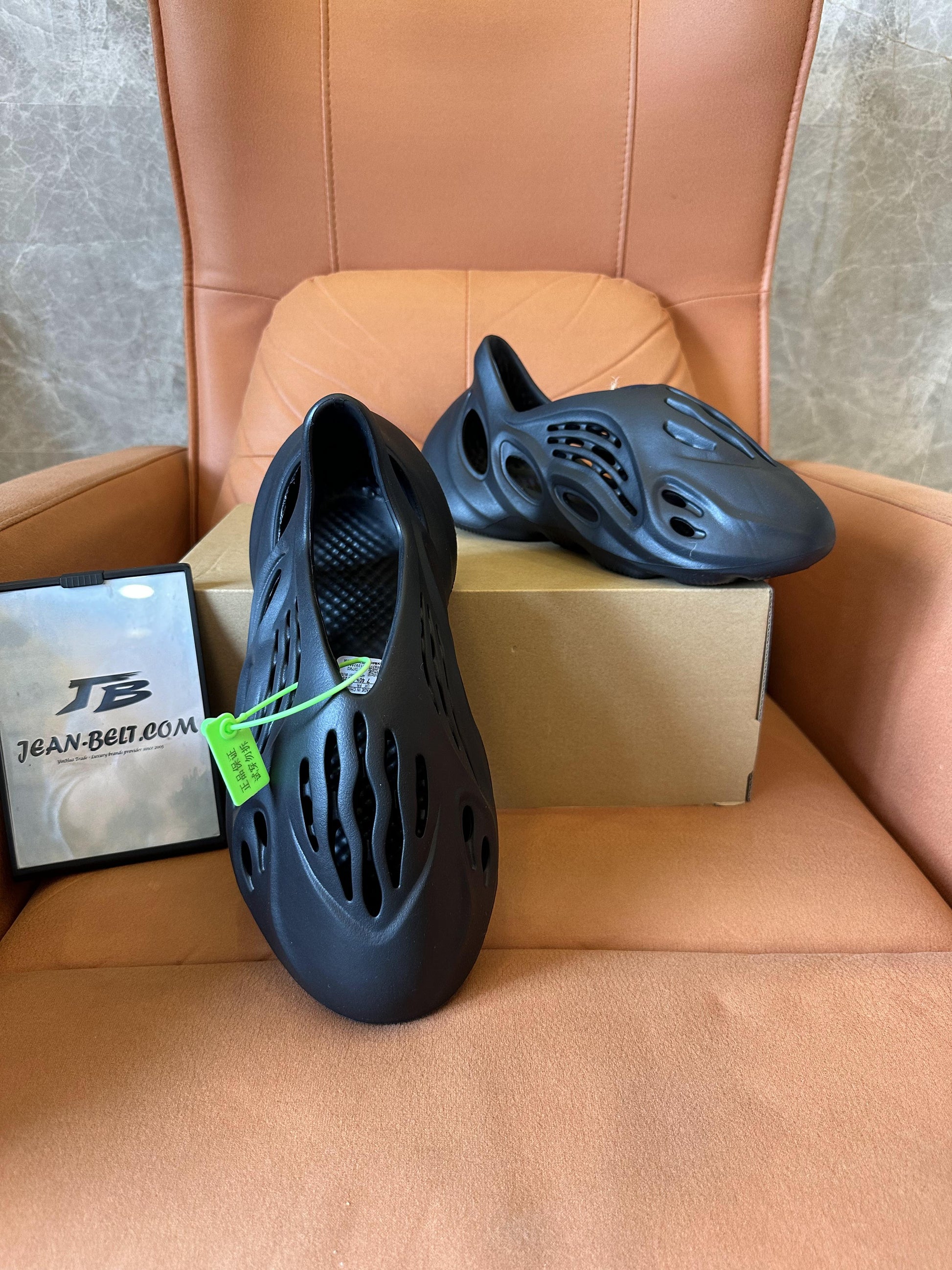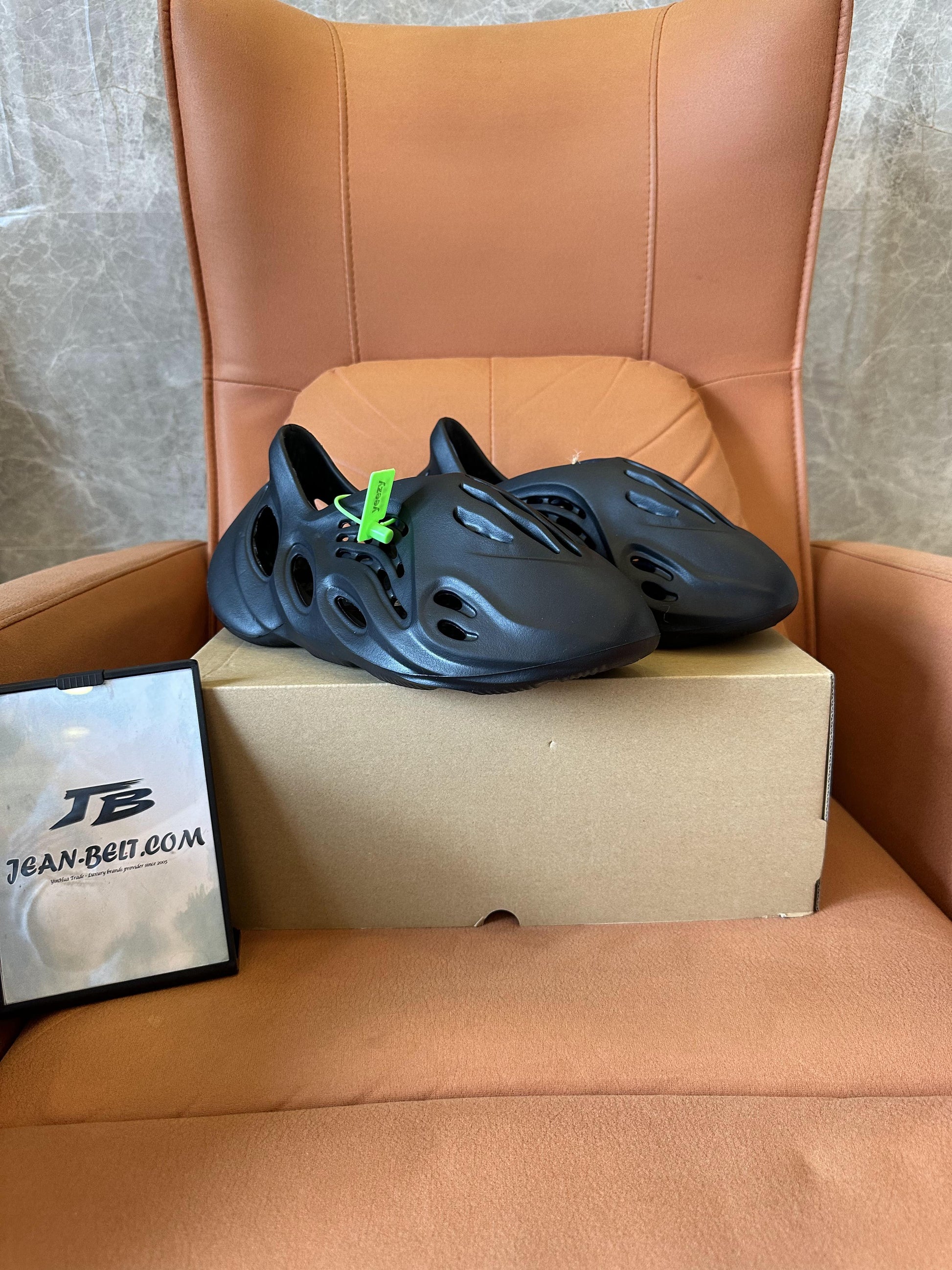 Embrace futuristic style and ultimate comfort with the Adidas Yeezy Foam Runner in black. Designed by Kanye West, these slip-on sneakers feature a unique sculptural design with breathable cutouts for ventilation. Made from lightweight and durable EVA foam, they are perfect for casual wear, beach outings, or relaxed days. The ergonomic shape provides superior comfort and support, while the minimalist black colorway ensures versatility with any outfit. Comes with the original box and tags.