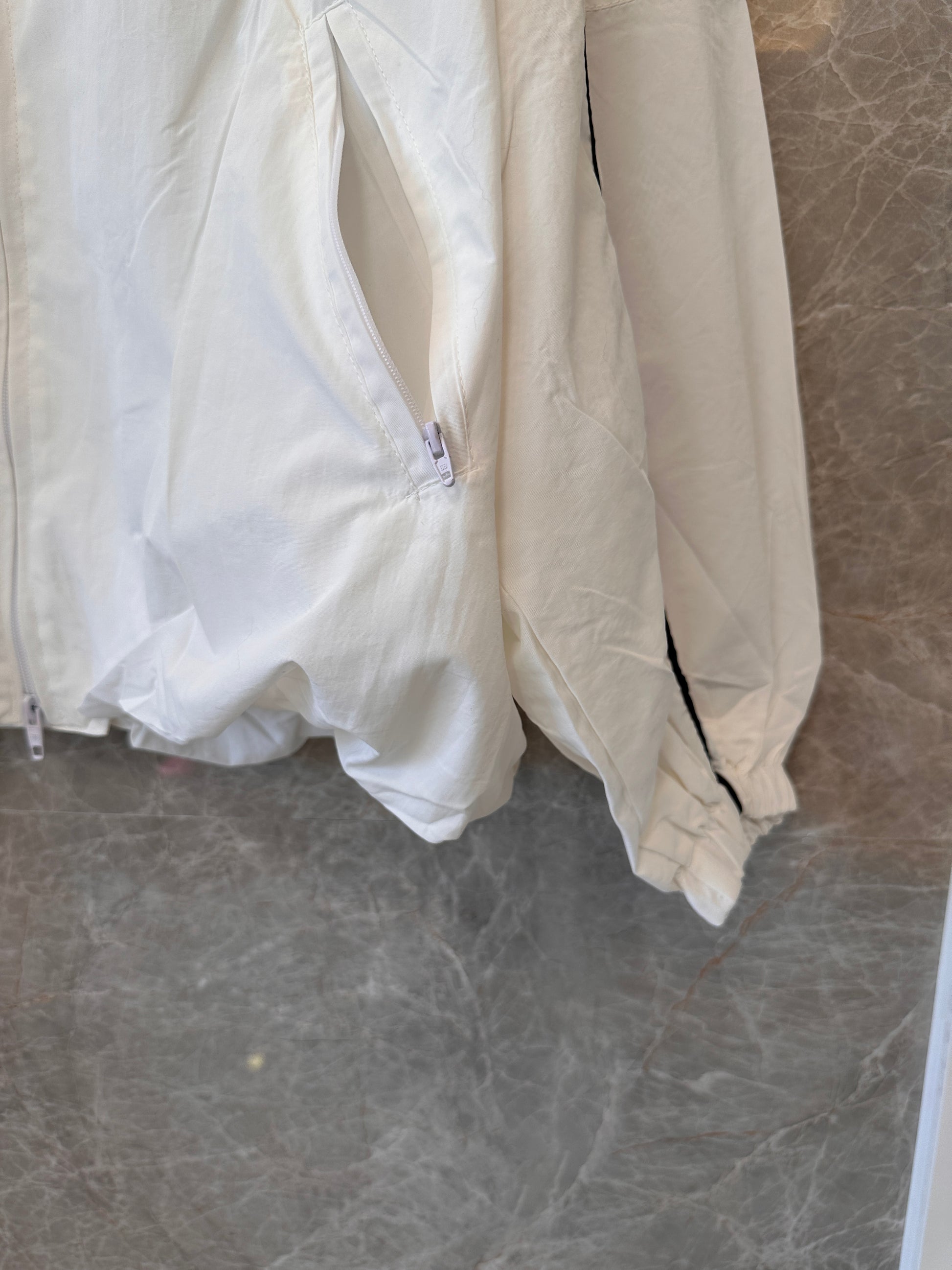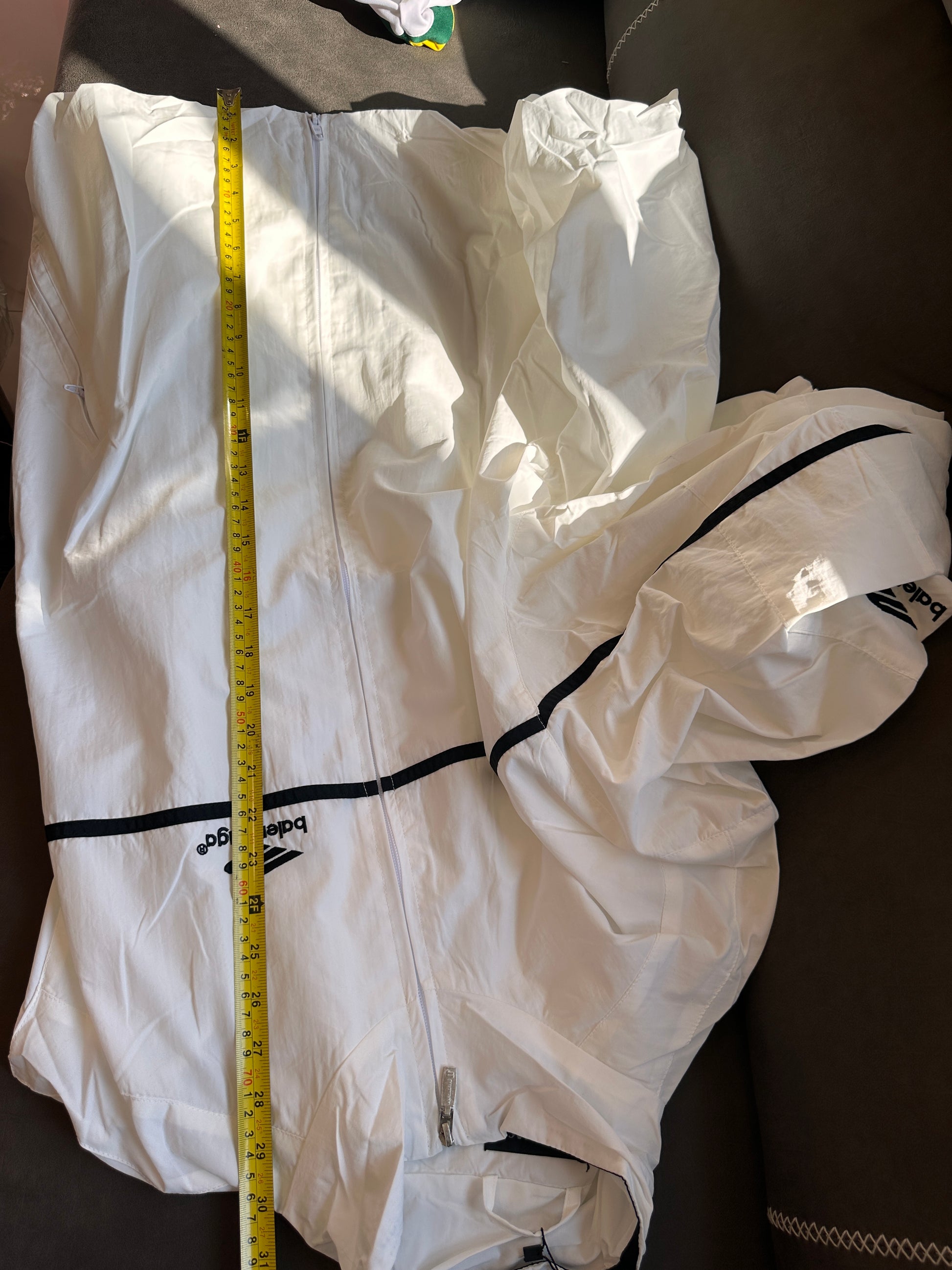 Add a touch of quirk to your sportswear with the Balenciaga 3B curled edge jacket. Its unique design and curled edges provide a playful twist to the traditional sports jacket. Stay stylish while you hit the gym or run errands. (No need to sacrifice fashion for function!)