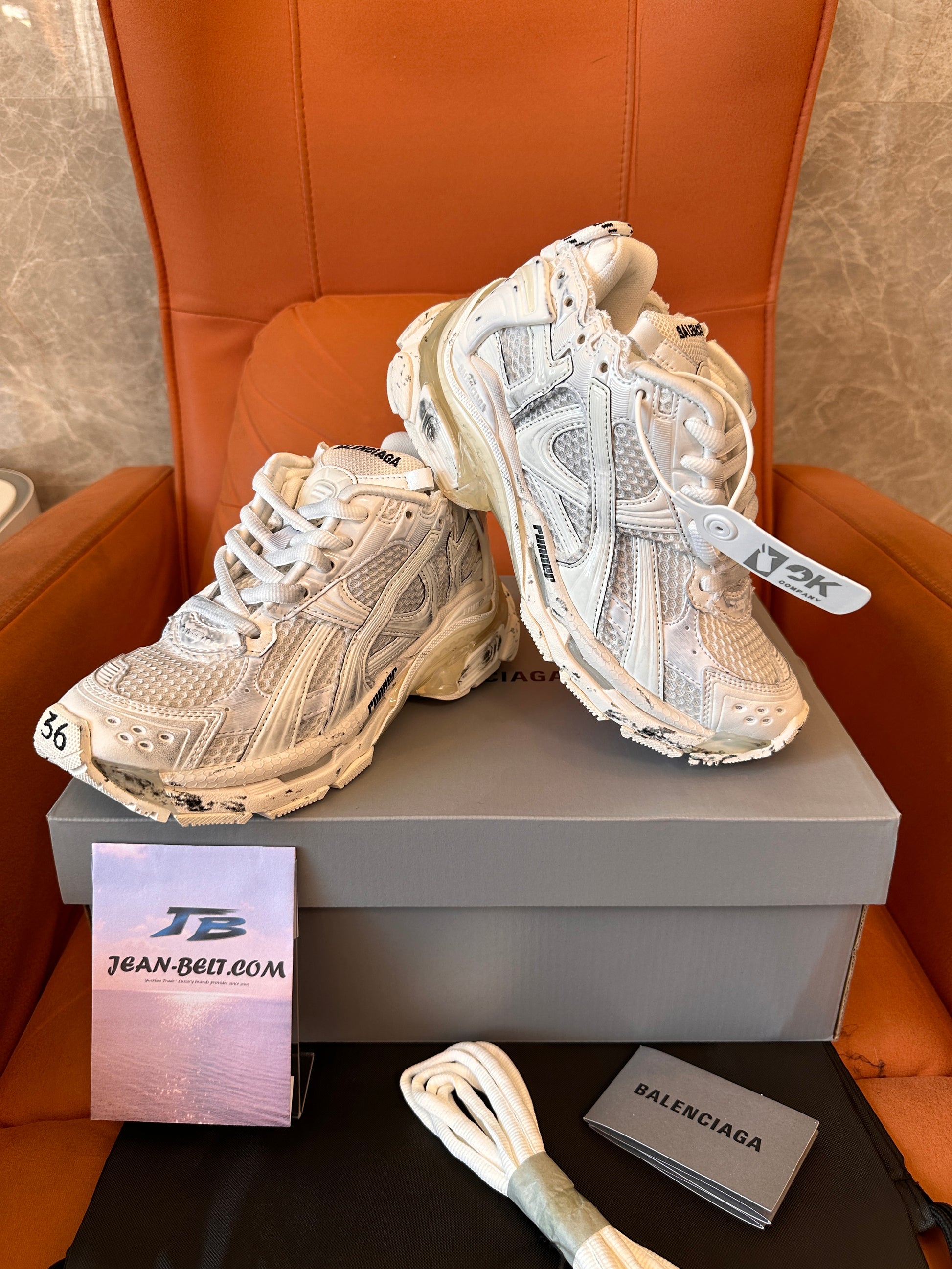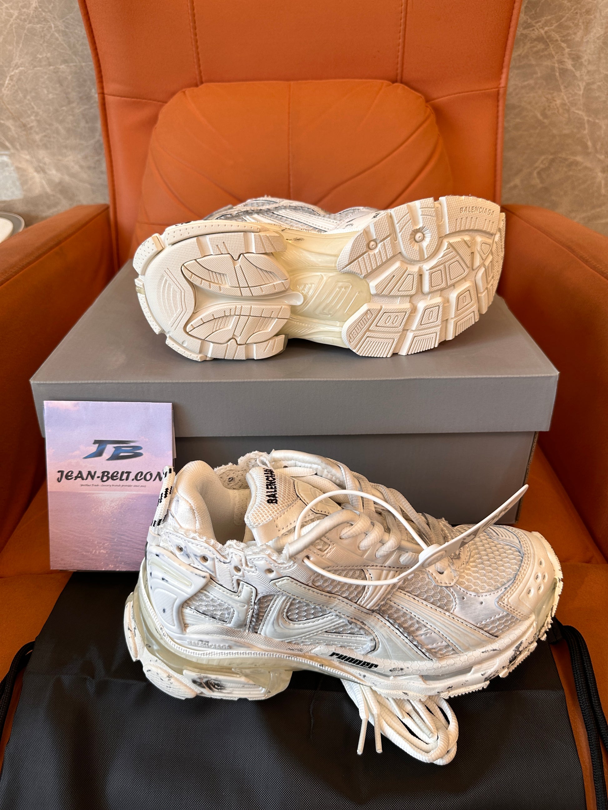 Experience the perfect blend of high-fashion aesthetics and street-style appeal with the Balenciaga 3XL White Distressed Sneakers. Designed with a chunky silhouette, these sneakers feature a meticulously crafted distressed effect, giving them a worn-in yet stylish look. The multi-layered mesh and synthetic leather construction ensure durability while maintaining a lightweight feel. The oversized sole unit offers superior comfort and cushioning, making these sneakers ideal for all-day wear. The Balenciaga branding on the tongue and heel adds a signature luxury touch, while the 36 size marking on the front enhances the deconstructed aesthetic.