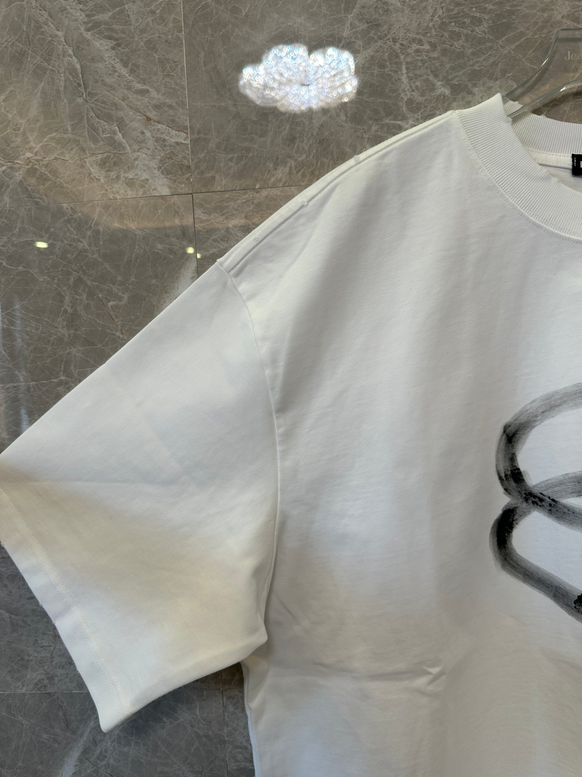 Make a bold statement with this Balenciaga oversized t-shirt, crafted from premium cotton and styled with an artistic graffiti-inspired print. The front showcases an abstract brushstroke circle motif, while the back features the brand’s name in large, expressive calligraphy-style letters. Designed with a relaxed drop-shoulder silhouette, this tee blends avant-garde edge with everyday comfort.