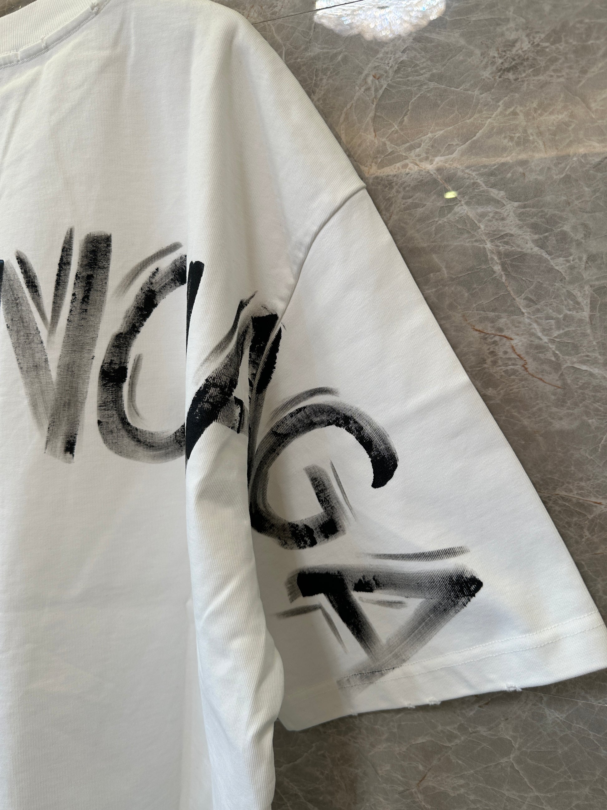 Balenciaga Oversized Graffiti Logo T-shirt – White with Brushstroke Print