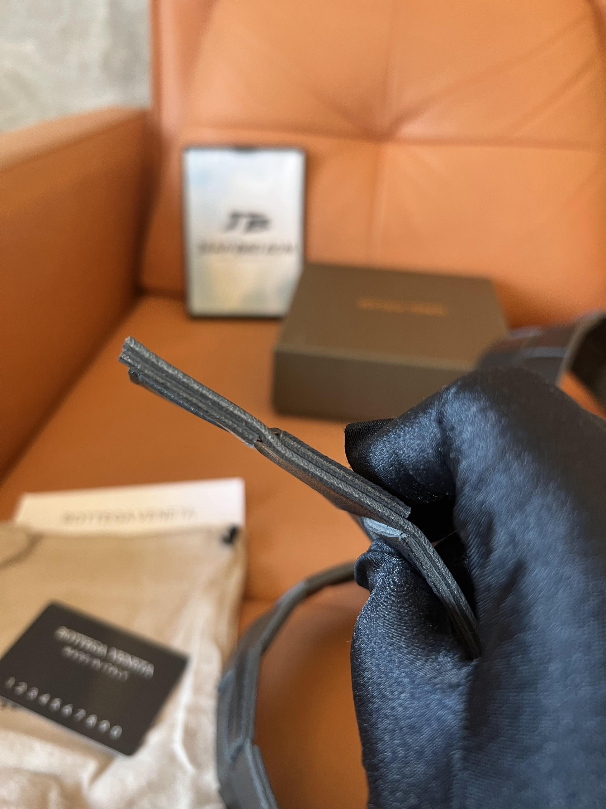 - Premium Italian leather with Bottega Veneta’s iconic intrecciato weave