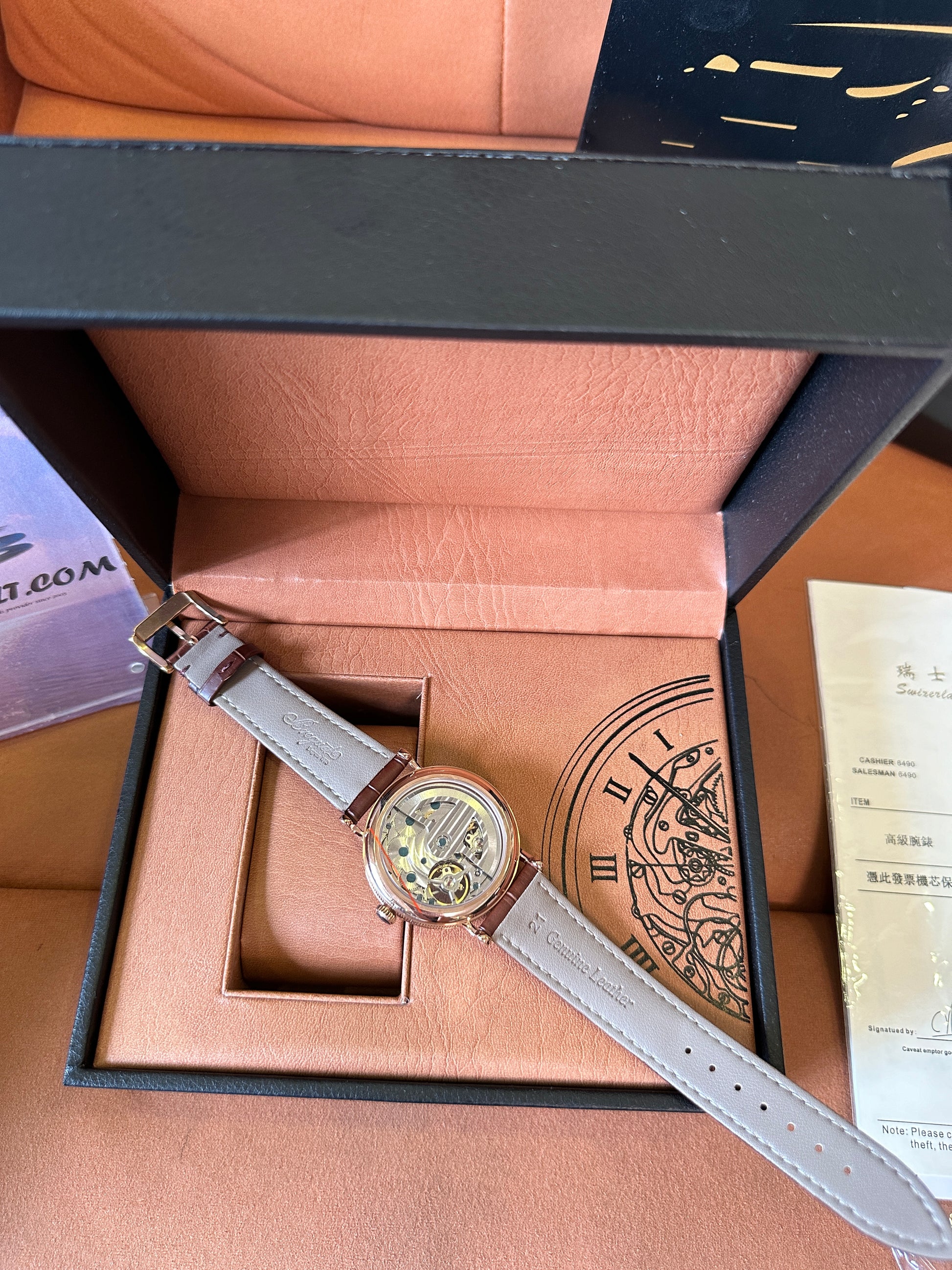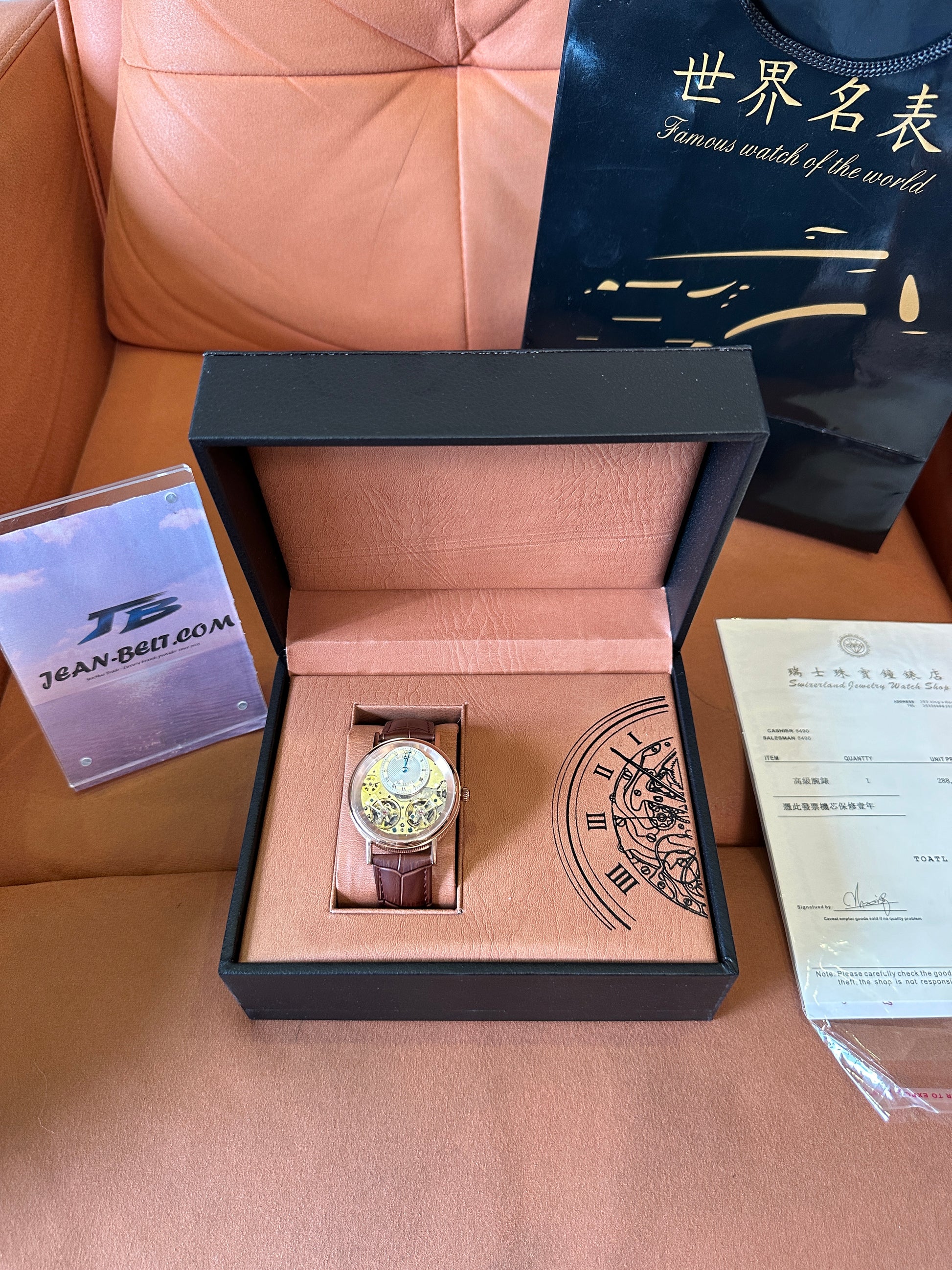 The Breguet Tradition 7057 embodies the brand’s heritage of fine watchmaking, blending classical elegance with modern mechanical artistry. Housed in a 40mm 18k rose gold case, it features a distinctive open-dial design showcasing exposed gear trains and dual barrels. The off-centered silver guilloché dial at 12 o’clock highlights Breguet’s iconic blued-steel hands and Roman numeral markers. Finished with a luxurious brown alligator leather strap, this timepiece offers a transparent case back for a full view of its hand-wound movement. A statement of horological mastery, the Tradition 7057 is ideal for collectors who appreciate timeless craftsmanship.