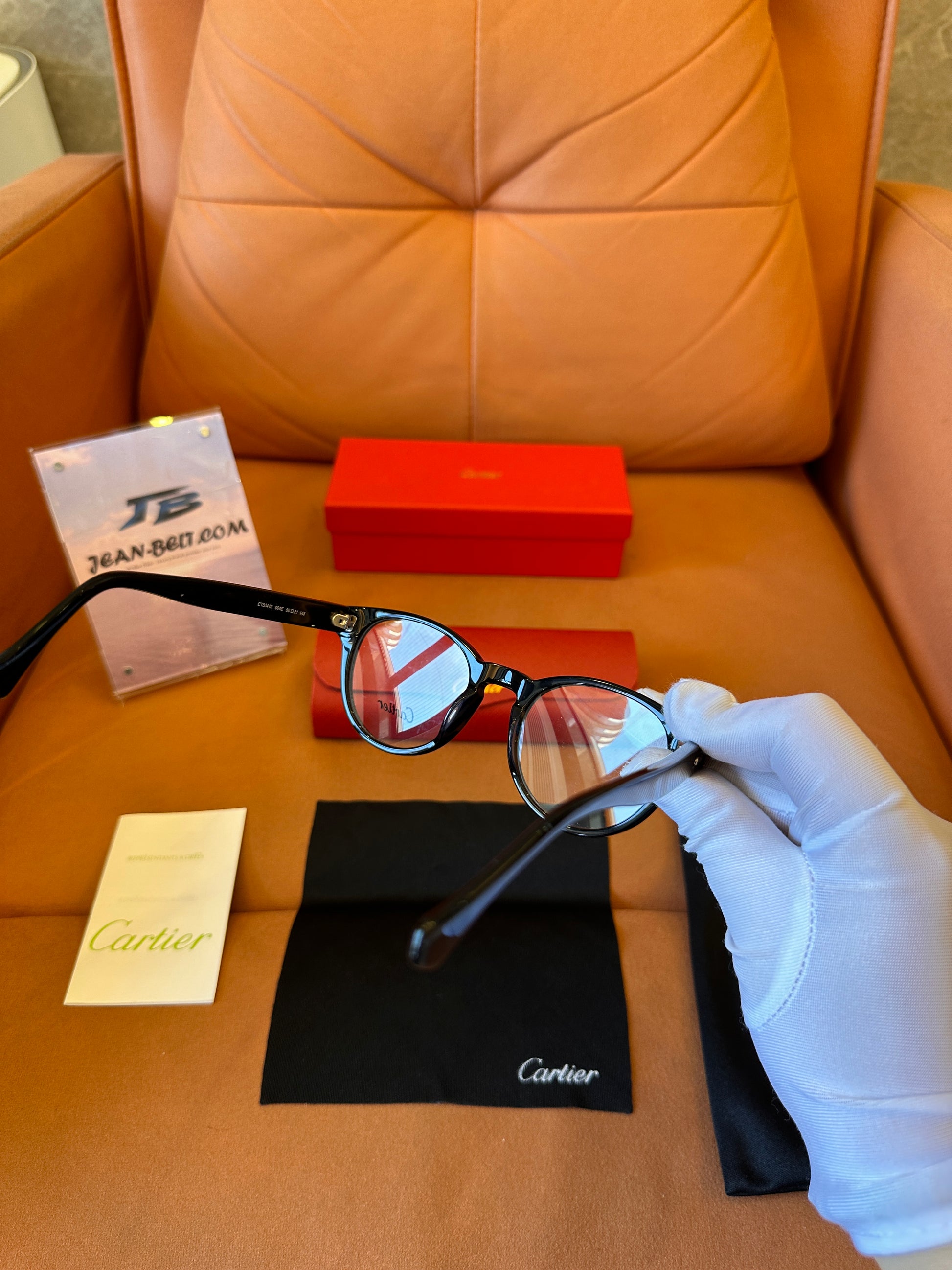 Discover the sleek and classic design of Cartier's plain glasses. These glasses offer a modern and timeless look, perfect for any occasion. Crafted with precision and attention to detail, they provide 100% protection against harmful UV rays. Elevate your style and protect your eyes with Cartier plain glasses
