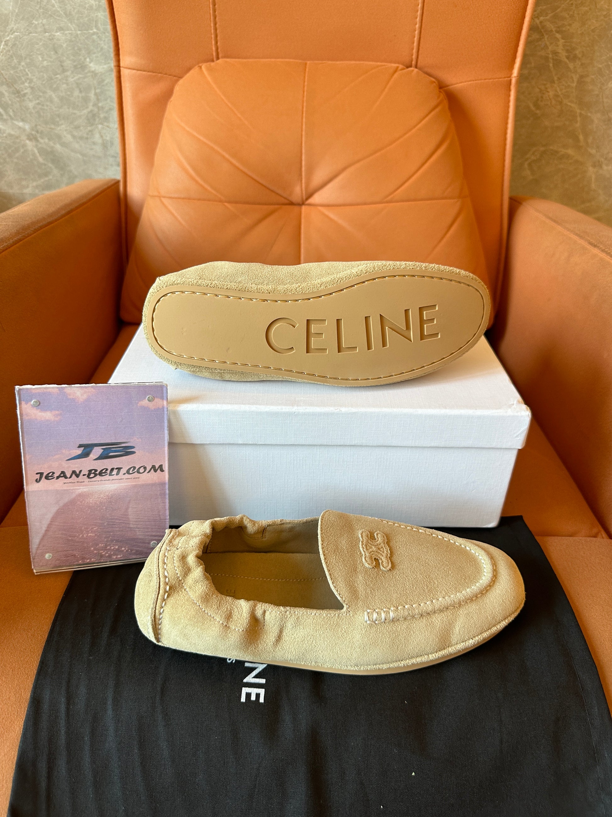 Celine Tan Suede Triomphe Loafers