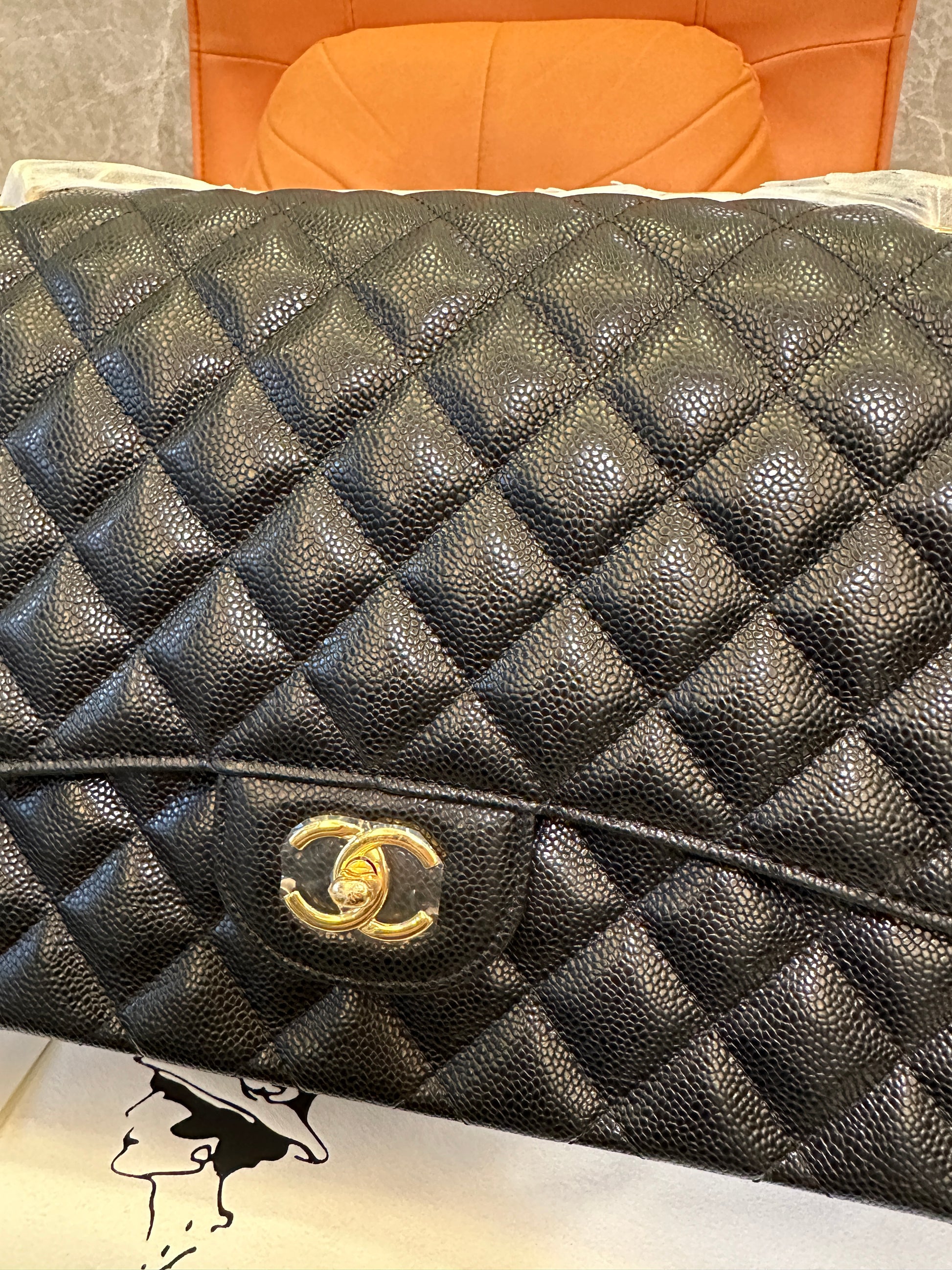 Elevate your wardrobe with the iconic Chanel Classic Flap Bag, crafted in luxurious black caviar leather and adorned with signature gold-tone hardware. Featuring the timeless diamond quilting, double C turn-lock closure, and a leather-interwoven chain strap, this masterpiece perfectly blends sophistication and versatility. Ideal for day-to-night transitions, the durable caviar finish ensures it remains a lasting investment in elegance.