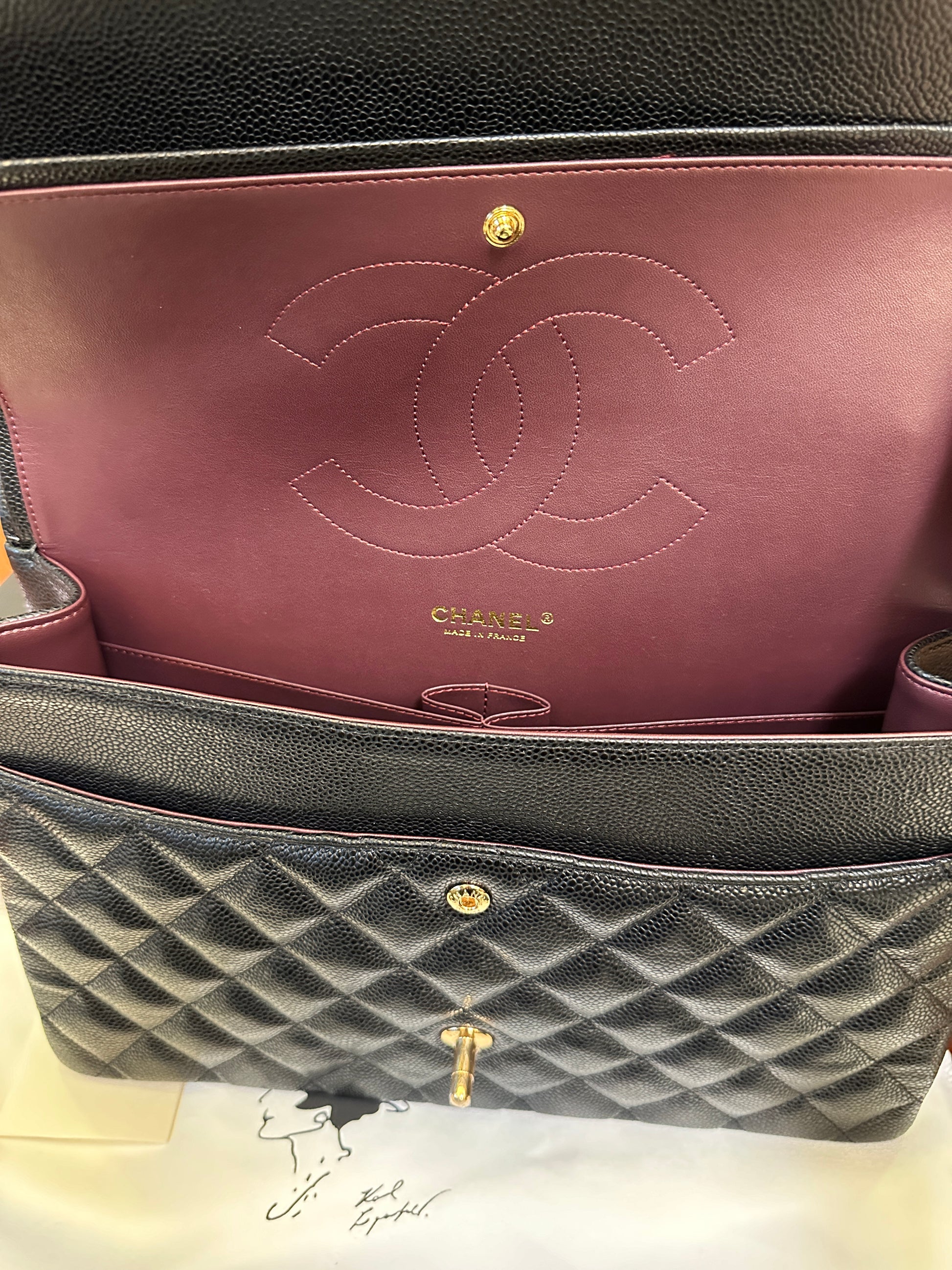 Chanel Classic Flap Bag Black Caviar Leather with Gold Hardware