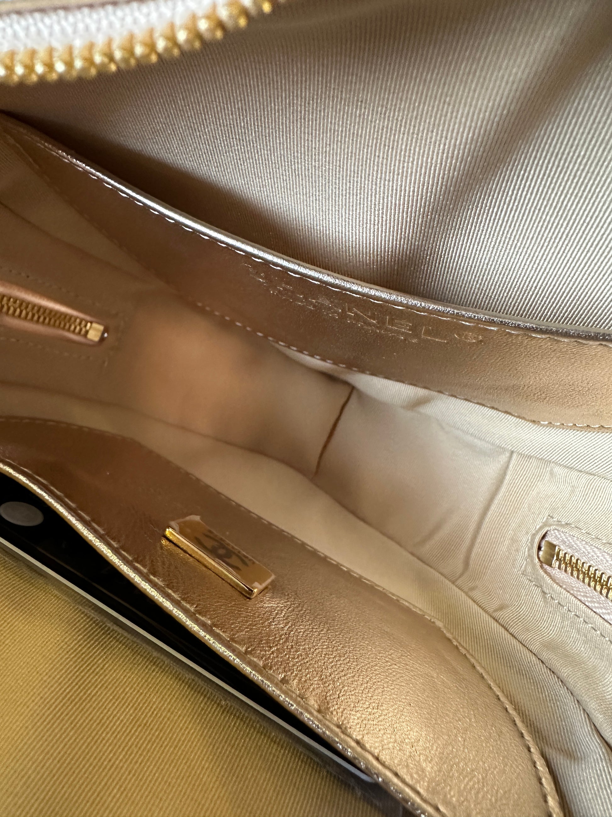 The Chanel Heart-Shaped Flap Bag is a statement piece that blends playful charm with timeless elegance. Crafted from metallic gold quilted leather, this bag features the iconic interlocking CC logo on the front flap and a heart silhouette that adds a romantic touch. A compact yet practical design, it includes an interior compartment and back pocket for small essentials. The adjustable chain strap allows for versatile styling—wear it on the shoulder or crossbody. Perfect for both day and evening outings, this bag embodies Chanel’s spirit of luxury and creativity.