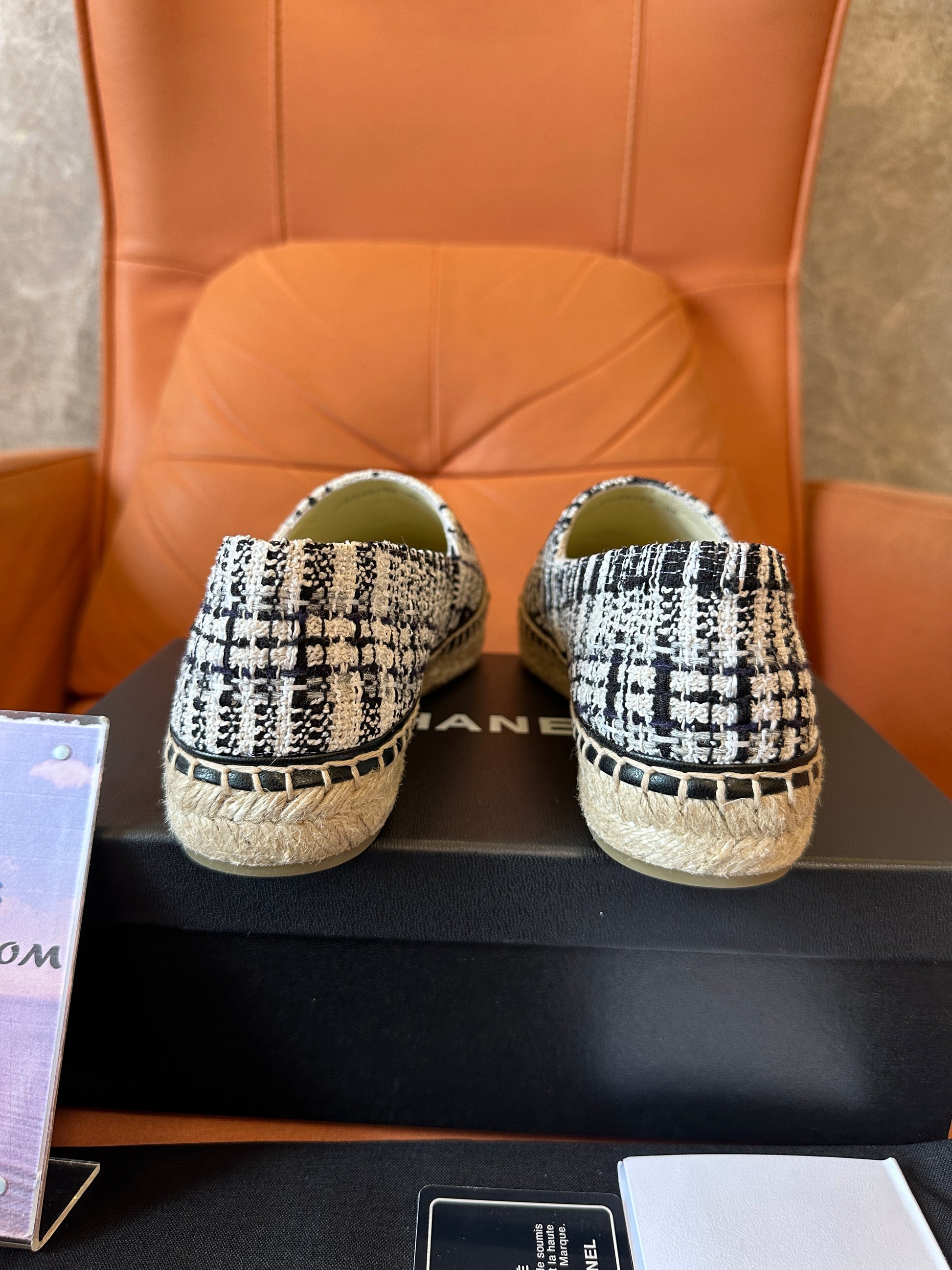 Chanel Tweed Espadrilles with Leather Toe Cap and CC Logo