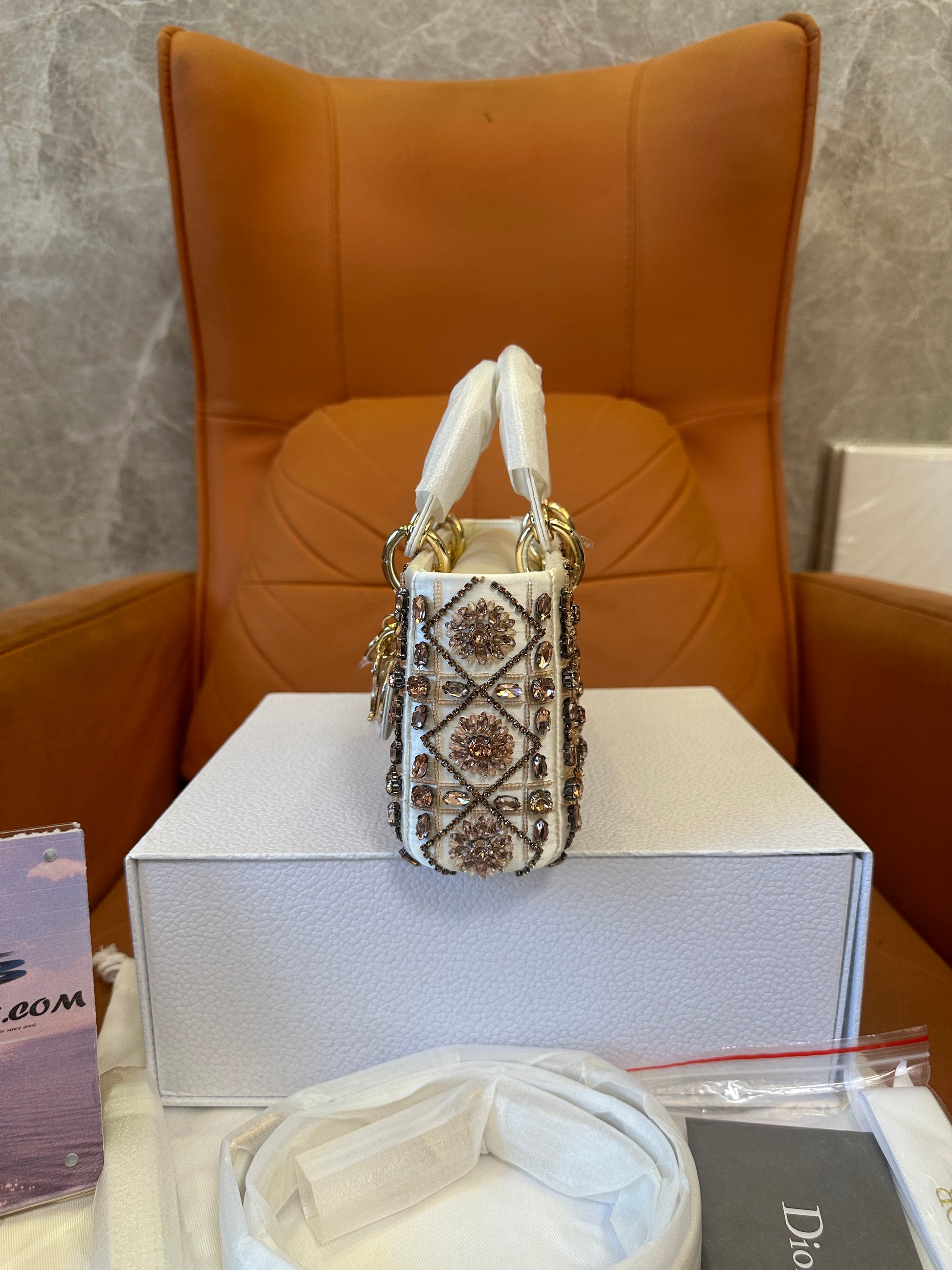 The bag comes complete with a shoulder strap and branded accessories as shown.