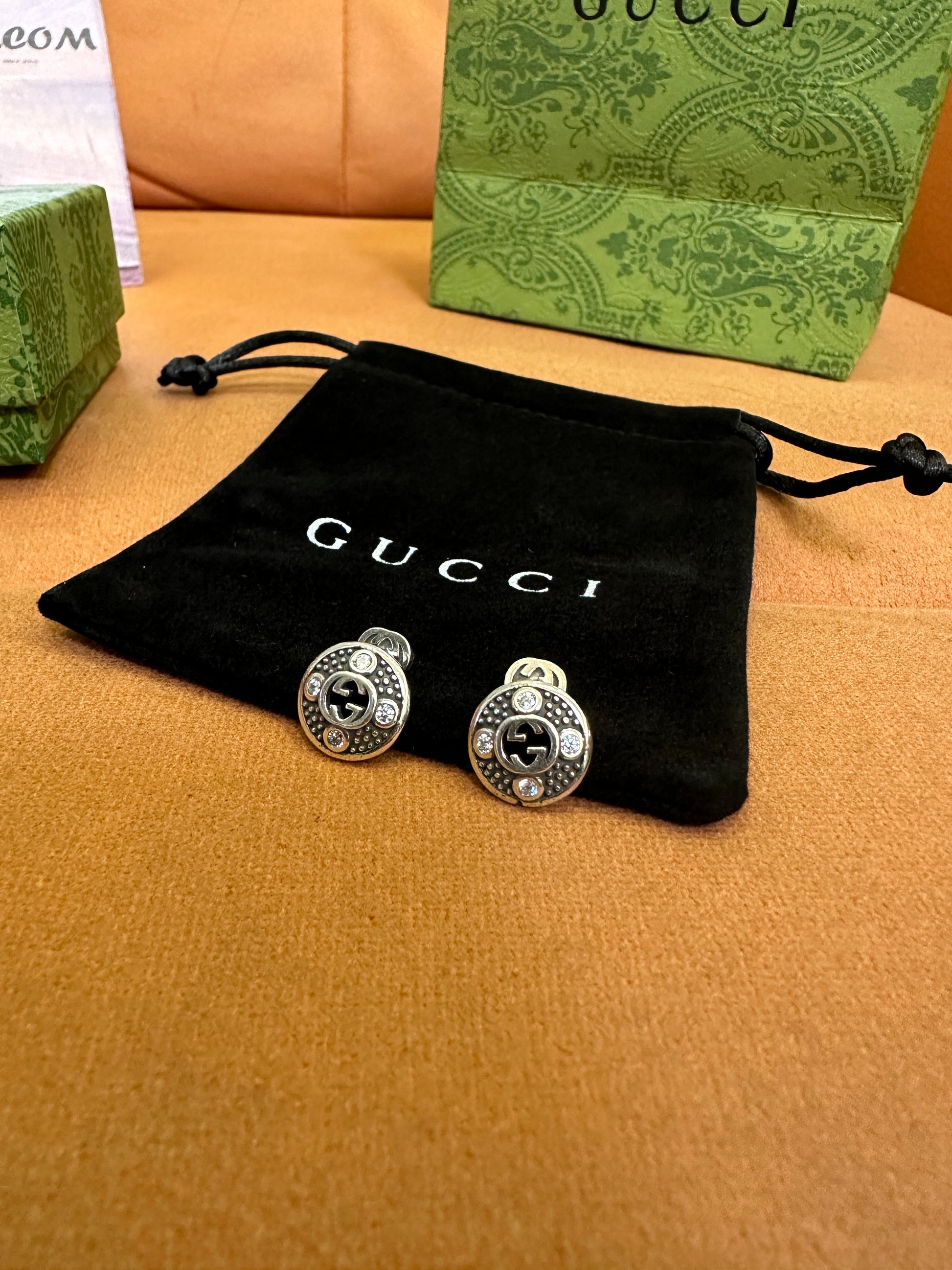 Gucci Interlocking G Crystal Stud Earrings Silver