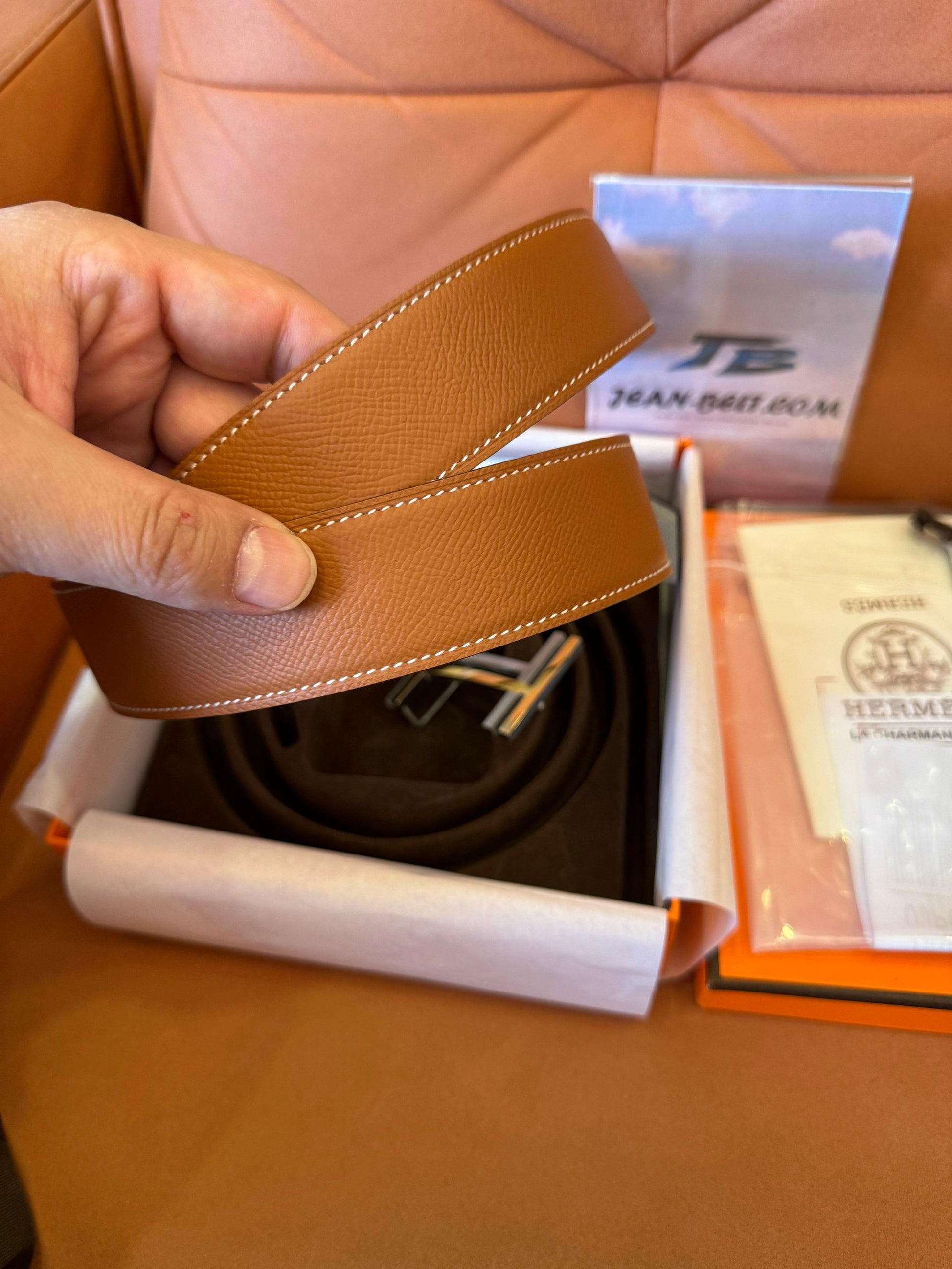 Hermes reversible leather belt with H buckle