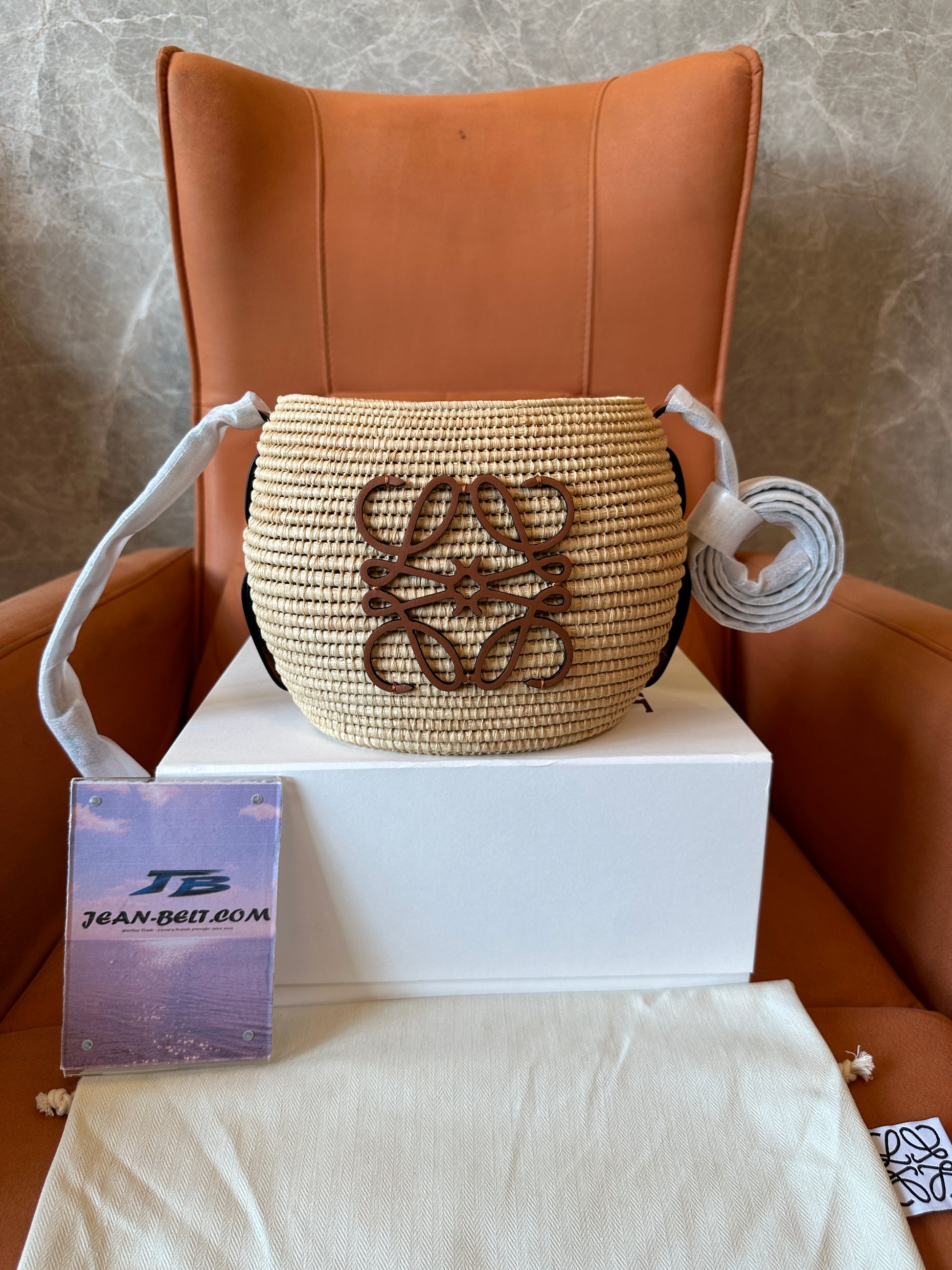 LOEWE Woven Raffia Bucket Crossbody Bag