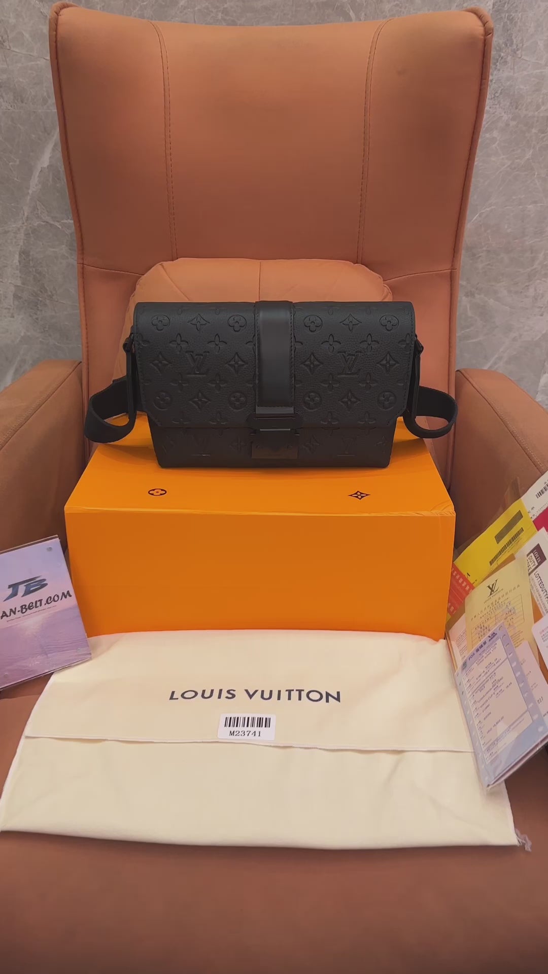 Crafted from Monogram embossed Taurillon leather, this messenger bag features a unique S-lock closure design, originally created by Georges Vuitton in 1886. Adorned with the iconic Louis Vuitton logo, the adjustable shoulder strap allows for versatile wear as a shoulder or crossbody bag. Made with Monogram embossed Taurillon leather, lined with fabric, and finished with metallic details, this bag offers a spacious main compartment with a lock, an interior pocket, and an exterior zippered pocket. Complete with a D ring and a non-removable, adjustable strap, this versatile bag is model number M23741 and measures 28x16x10CM.
