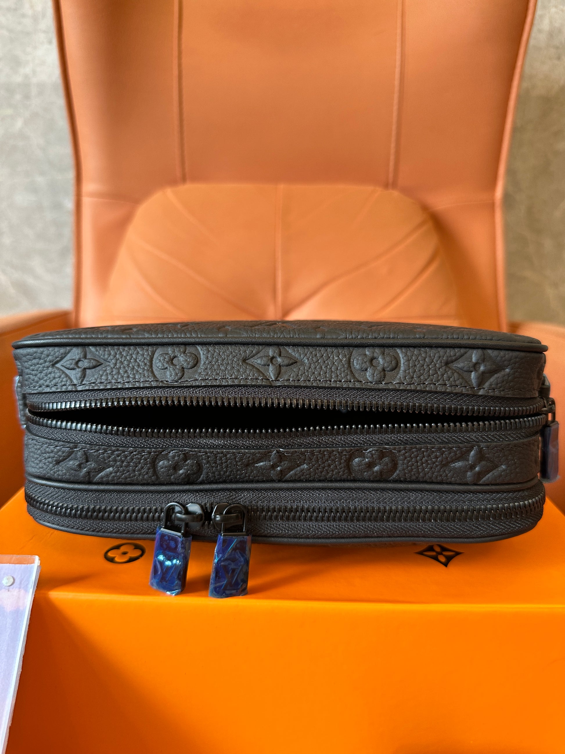 The Louis Vuitton Alpha Messenger Bag in Monogram Shadow leather is a sleek and modern take on the classic crossbody. Crafted from supple black calf leather with embossed LV Monogram patterns, this compact bag offers both style and practicality. Featuring two zippered compartments, a removable and adjustable Louis Vuitton jacquard strap, and subtle matte black hardware, it's perfect for everyday city life or travel.