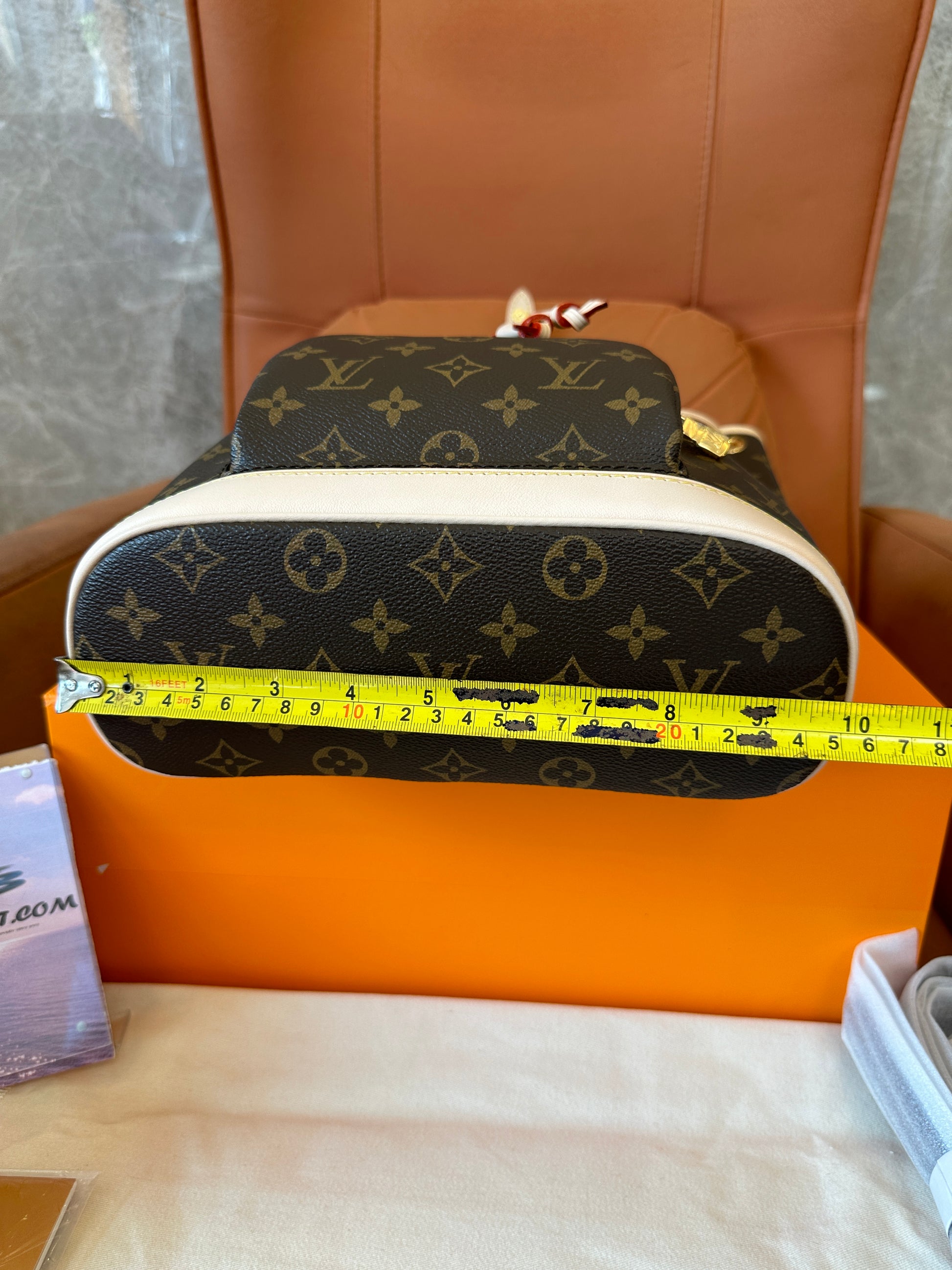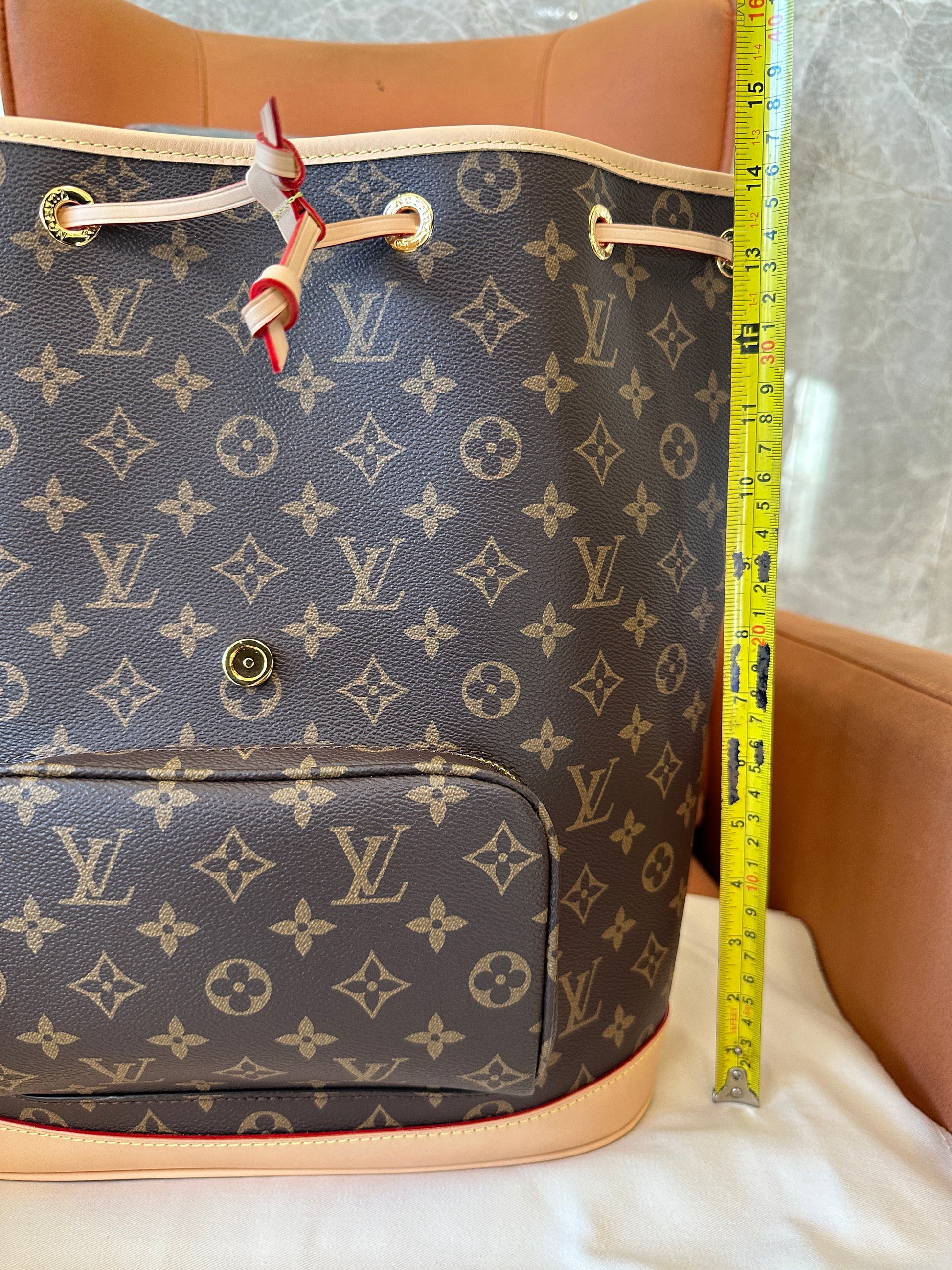 Material: Monogram coated canvas with natural cowhide leather trim