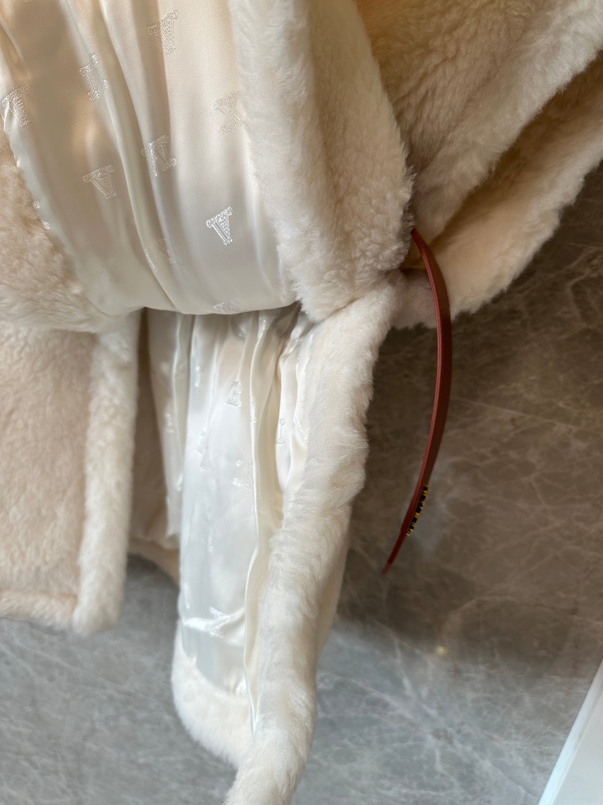 Designed with a wide collar and a relaxed sleeveless silhouette, the vest is finished with an adjustable leather belt to gently define the waist. The smooth inner lining ensures comfortable wear, while the voluminous faux fur exterior delivers warmth and visual richness without the use of wool or animal shearling.