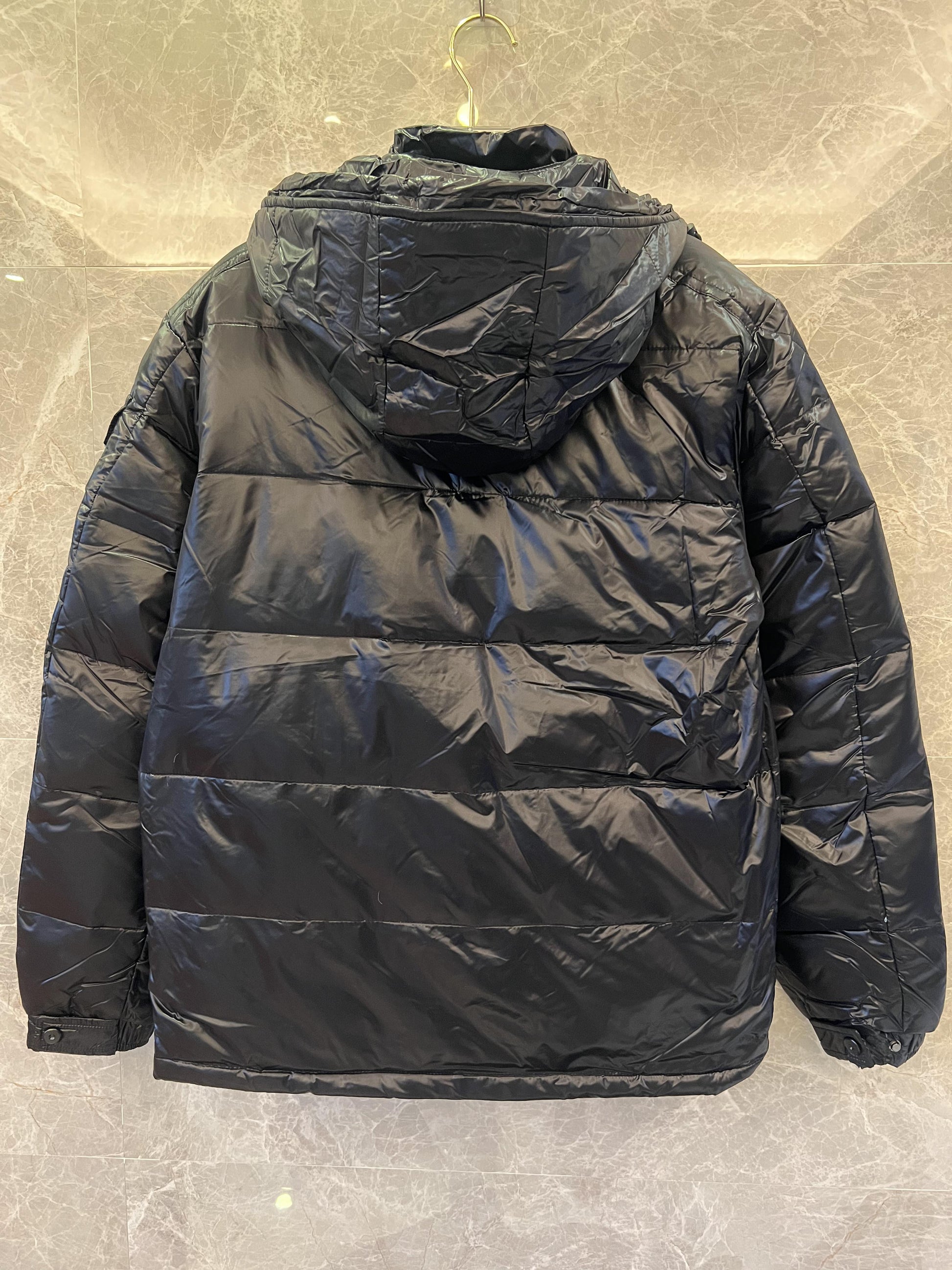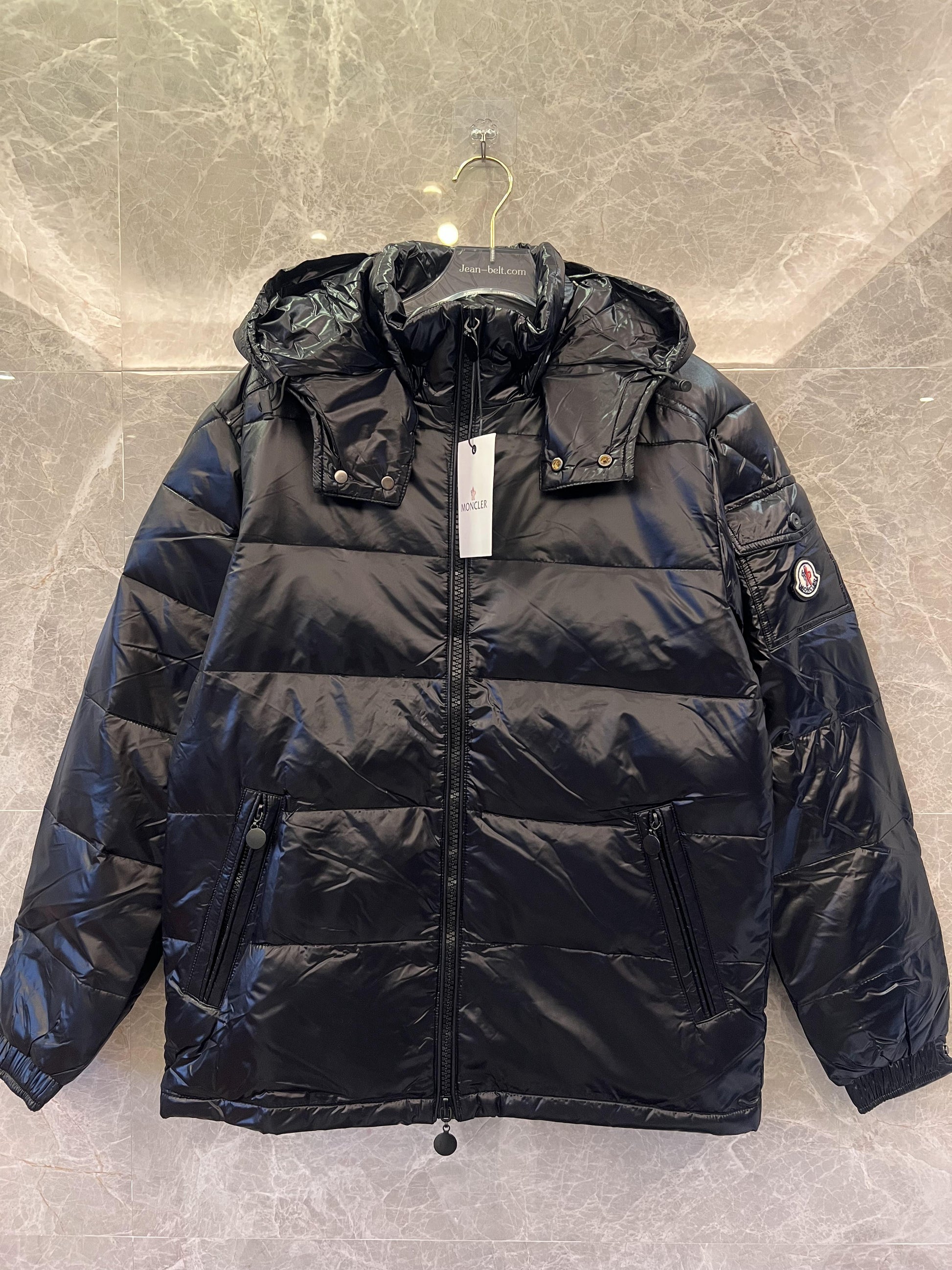 Stay warm and stylish with this sleek Moncler black puffer jacket, crafted with premium down insulation for superior comfort in colder weather. Featuring a detachable hood, zippered pockets, and the signature Moncler logo patch, this jacket offers both practicality and timeless design. The shiny black finish adds a touch of sophistication, making it perfect for city streets or outdoor adventures. Elevate your winter wardrobe with this versatile and iconic piece.
