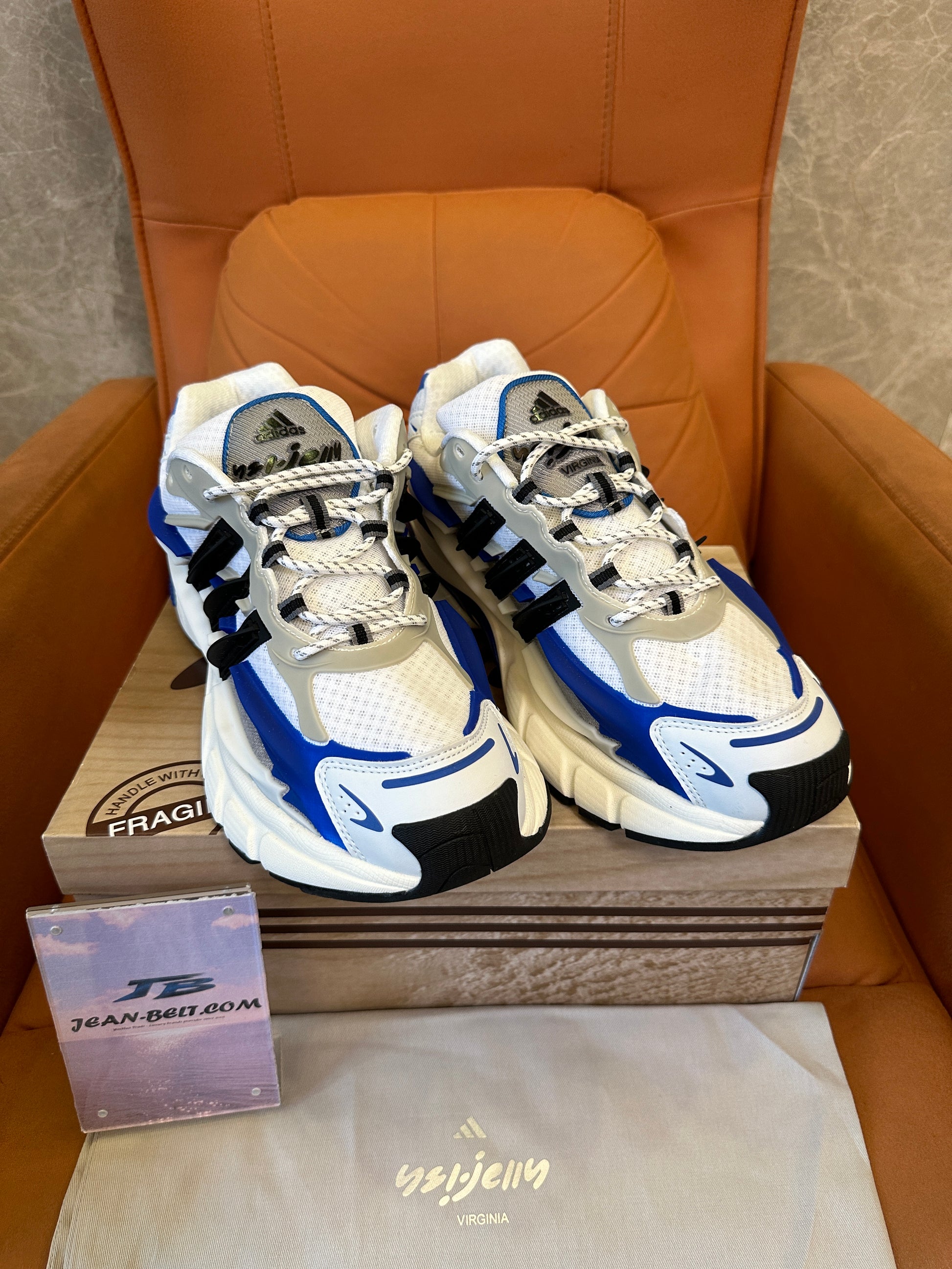 Step into the future of style and performance with the Pharrell Williams x Adidas Adistar Jellyfish in white and royal blue. Featuring a bold sculpted midsole inspired by fluid motion, breathable mesh uppers, and layered synthetic overlays for a dynamic look, this sneaker blends artistic design with athletic innovation. The contrasting black Three Stripes and blue accents highlight Pharrell’s signature vision of individuality and movement. Finished with durable Adiprene cushioning, this pair delivers ultimate comfort and cutting-edge aesthetics for everyday wear or standout street style.