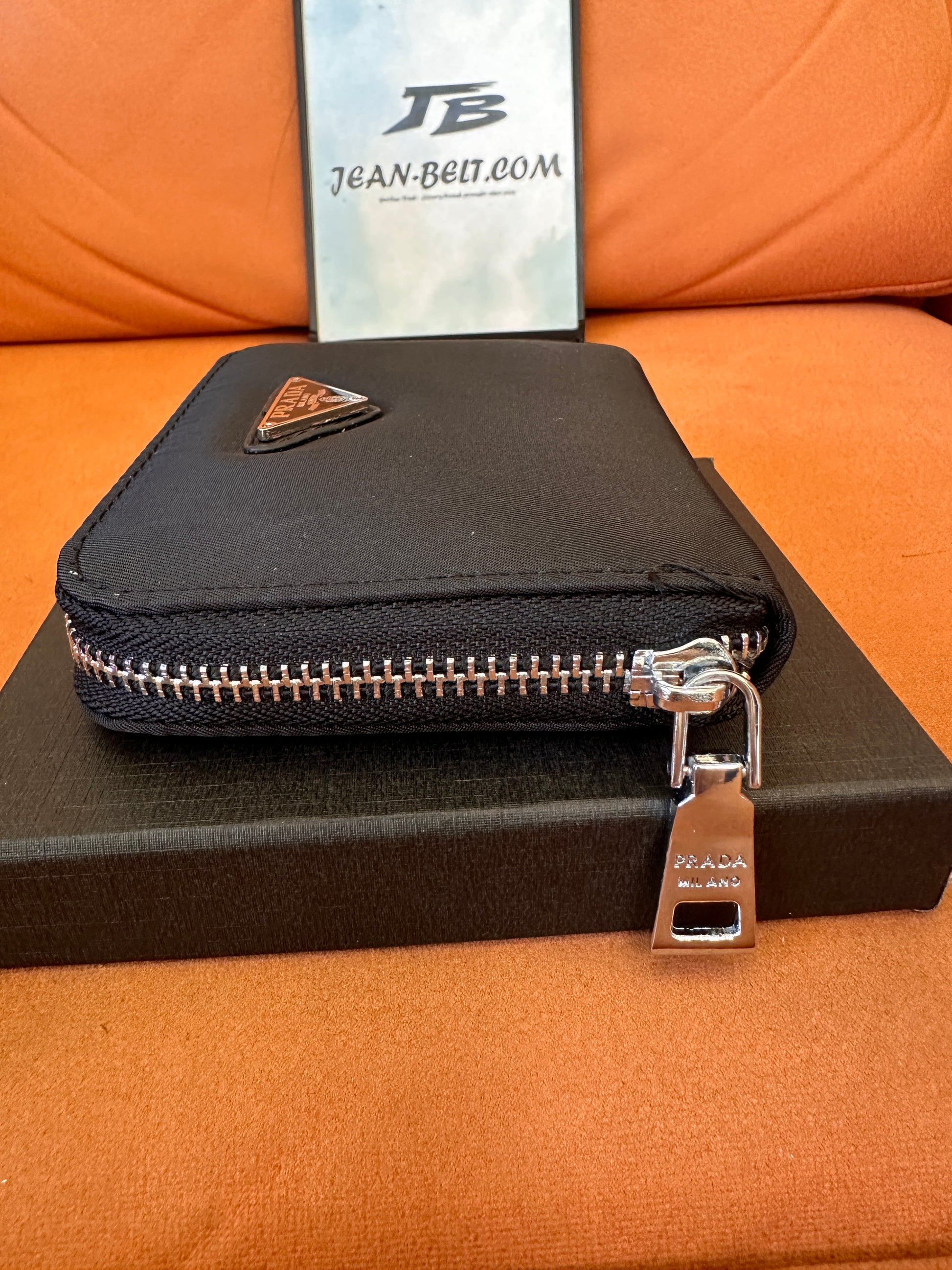 An expertly crafted Prada Saffiano bifold wallet, designed with a convenient zip closure for added security. Made with elegant black Saffiano leather, this wallet exudes luxury and sophistication. Stay organized with multiple card slots and compartments, perfect for everyday use.