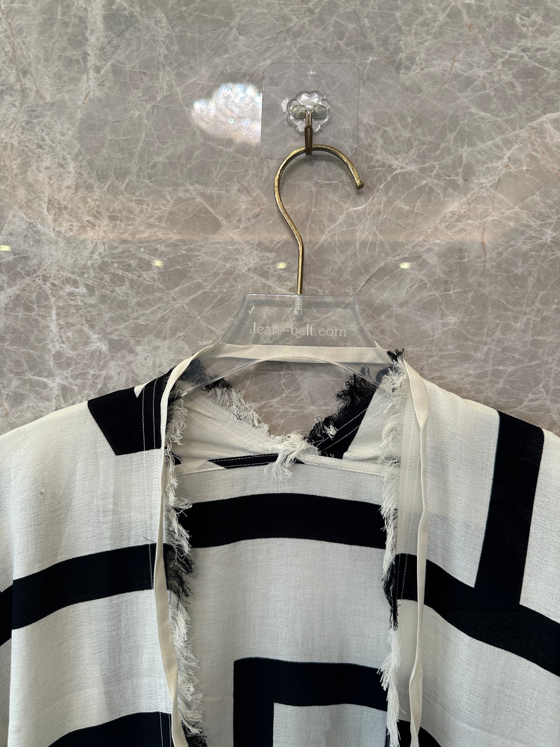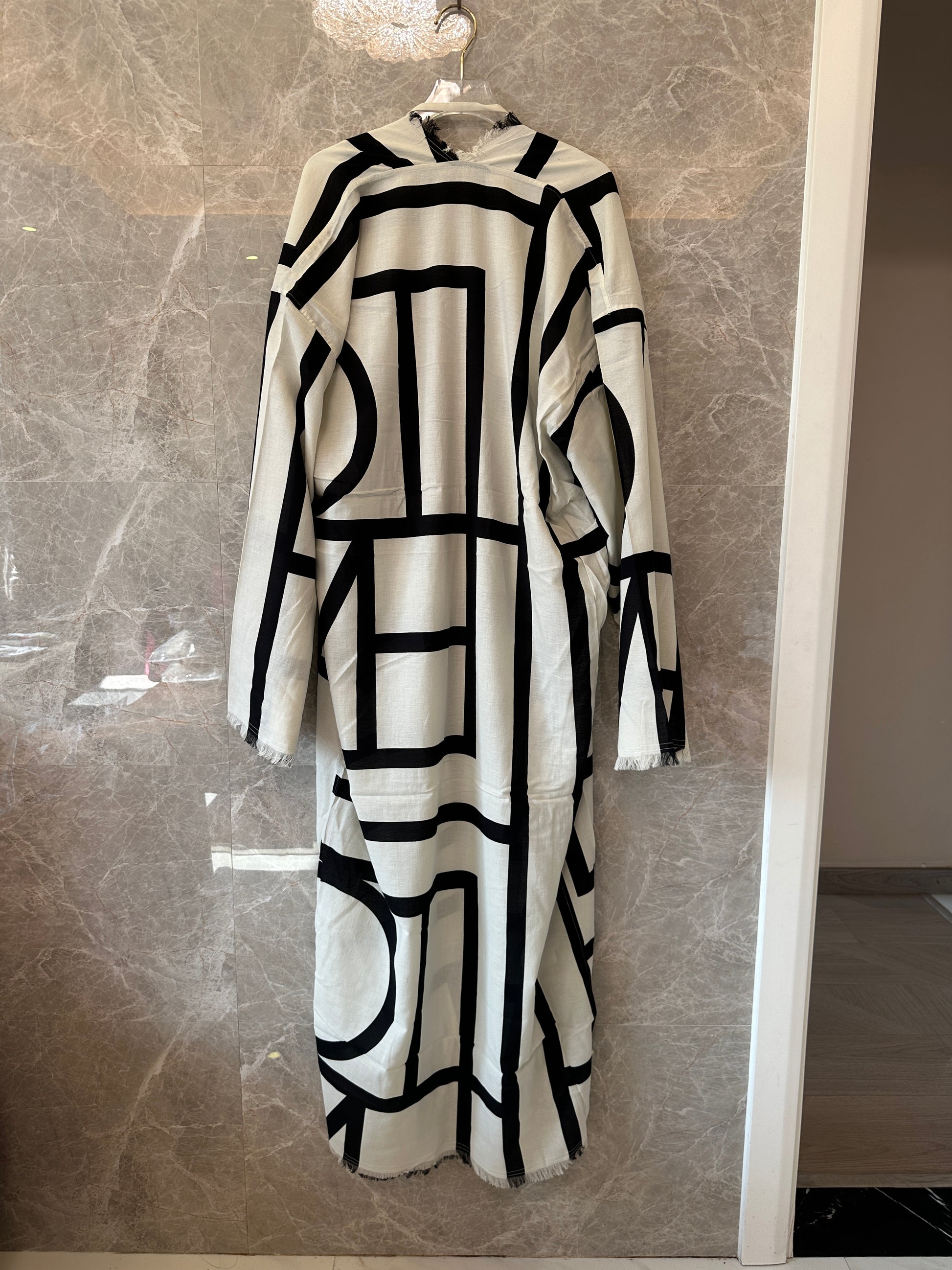 This long Toteme dress is defined by an all-over monogram graphic rendered in a bold ivory and black palette. Designed with a relaxed silhouette, it features a straight cut and subtle frayed edges that lend a modern, effortless finish.