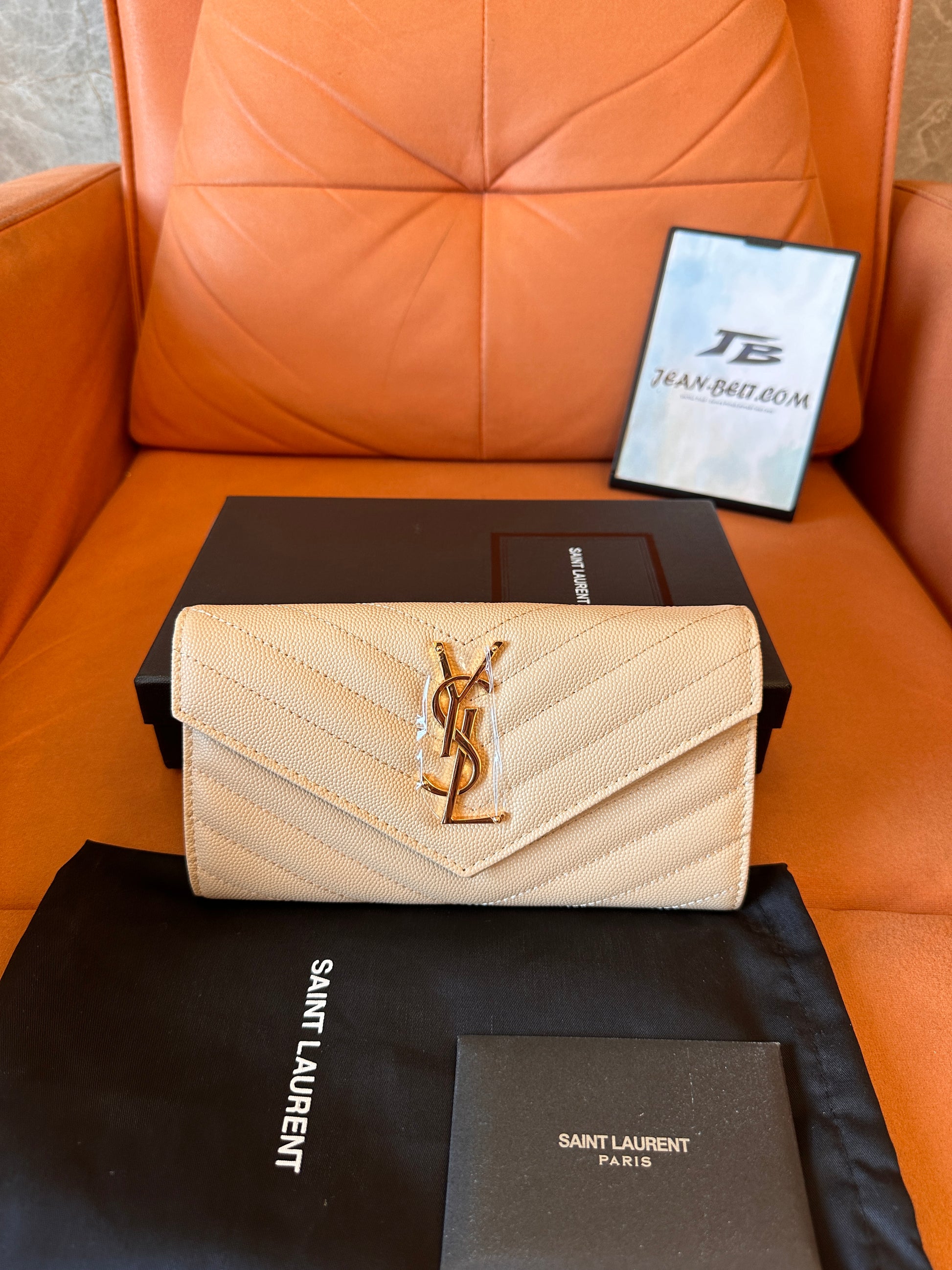 This YSL nude leather flap envelope wallet is expertly crafted with high quality leather, providing both durability and style. Its sleek design and spacious interior make it the perfect accessory for organizing your essentials while on the go. Elevate your style with this sophisticated and timeless wallet.
