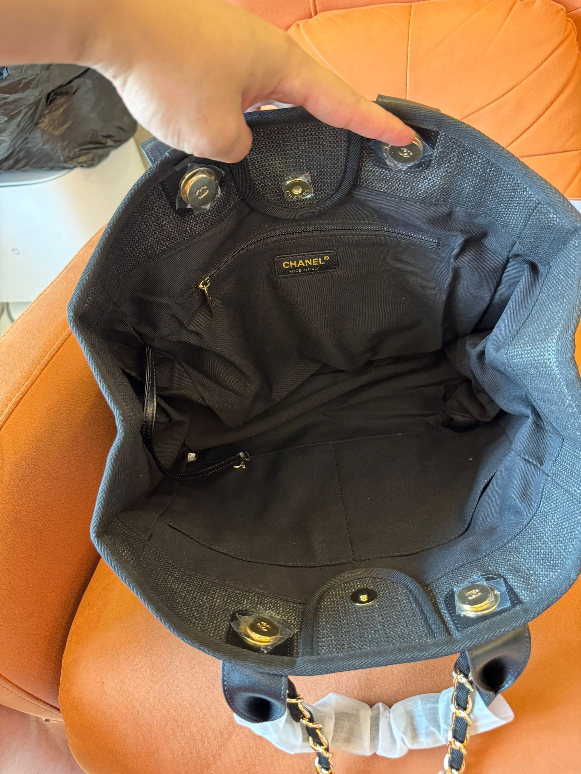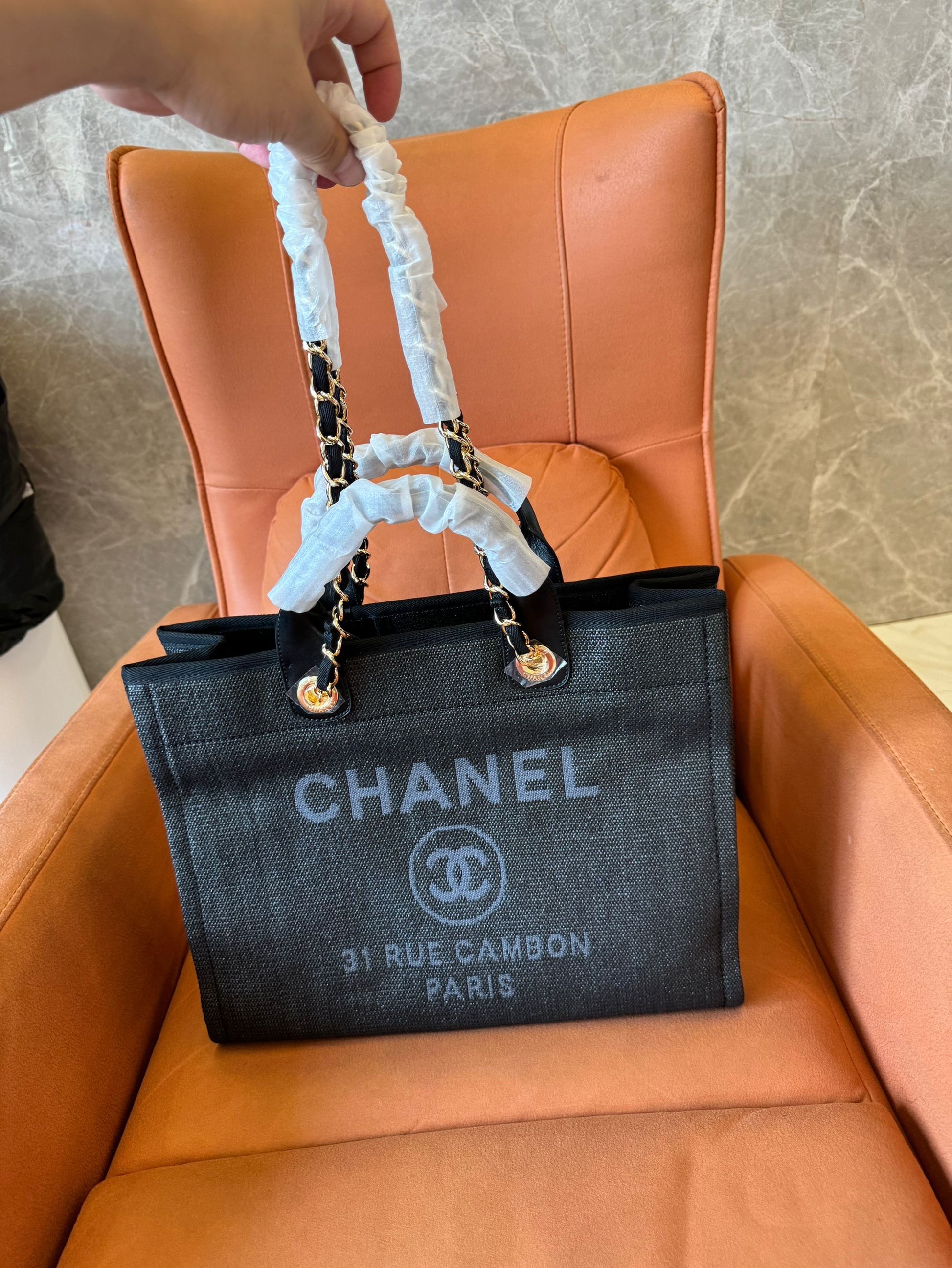 Mala de Compras Grande Chanel Deauville em Tweed/Pele Preta